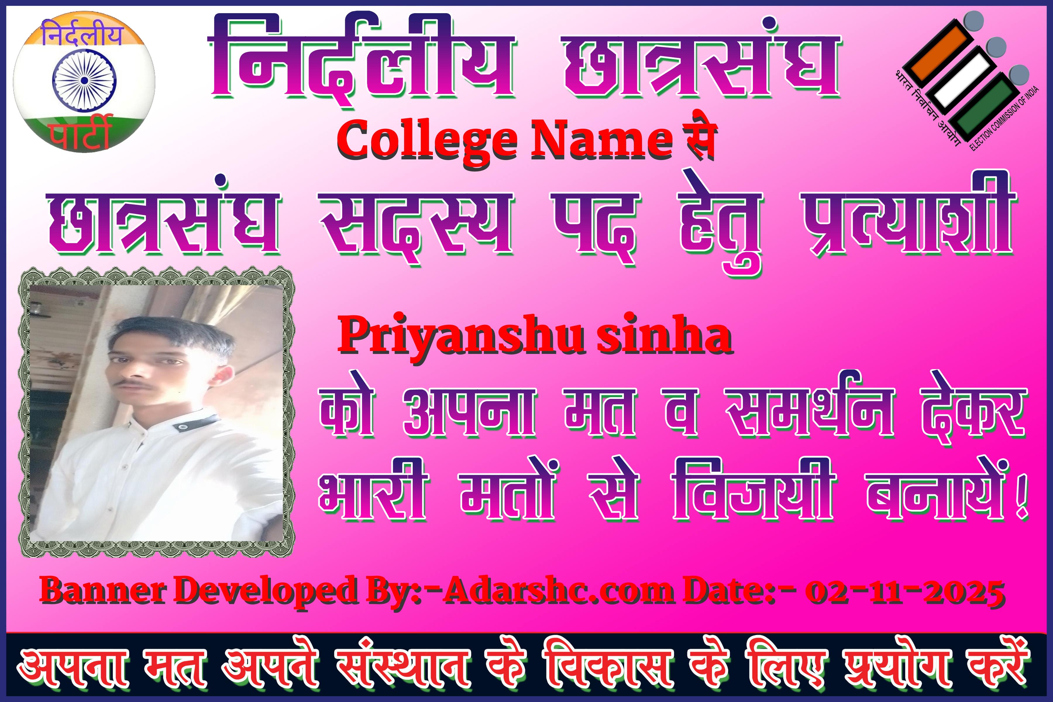 ☆ नमस्कार दोस्तों मेरा नाम Priyanshu sinha है, मैं College Name का छात्र/छात्रा हूँ,