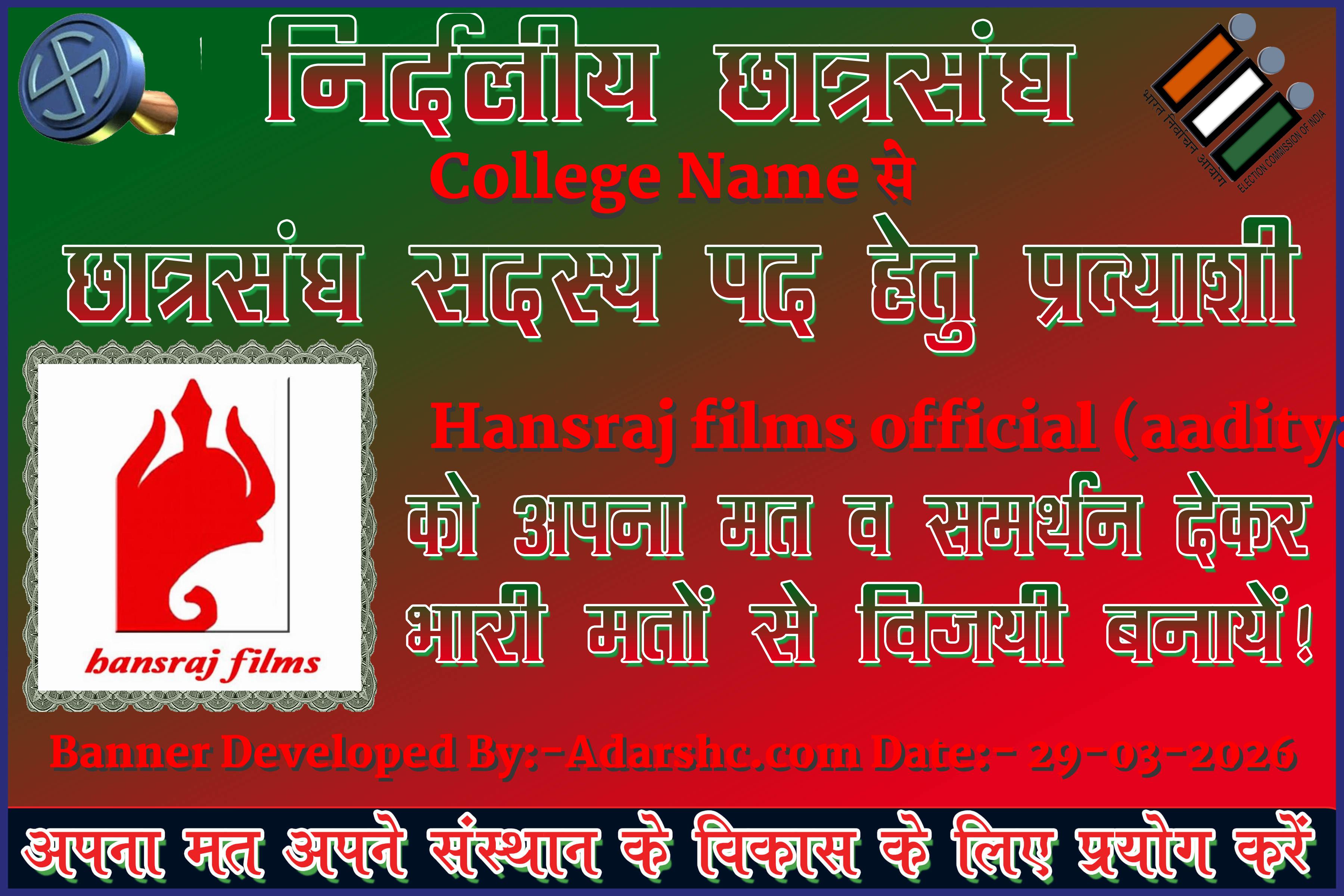 ☆ नमस्कार दोस्तों मेरा नाम Hansraj films official (aaditya hansraj) है, मैं College Name का छात्र/छात्रा हूँ,