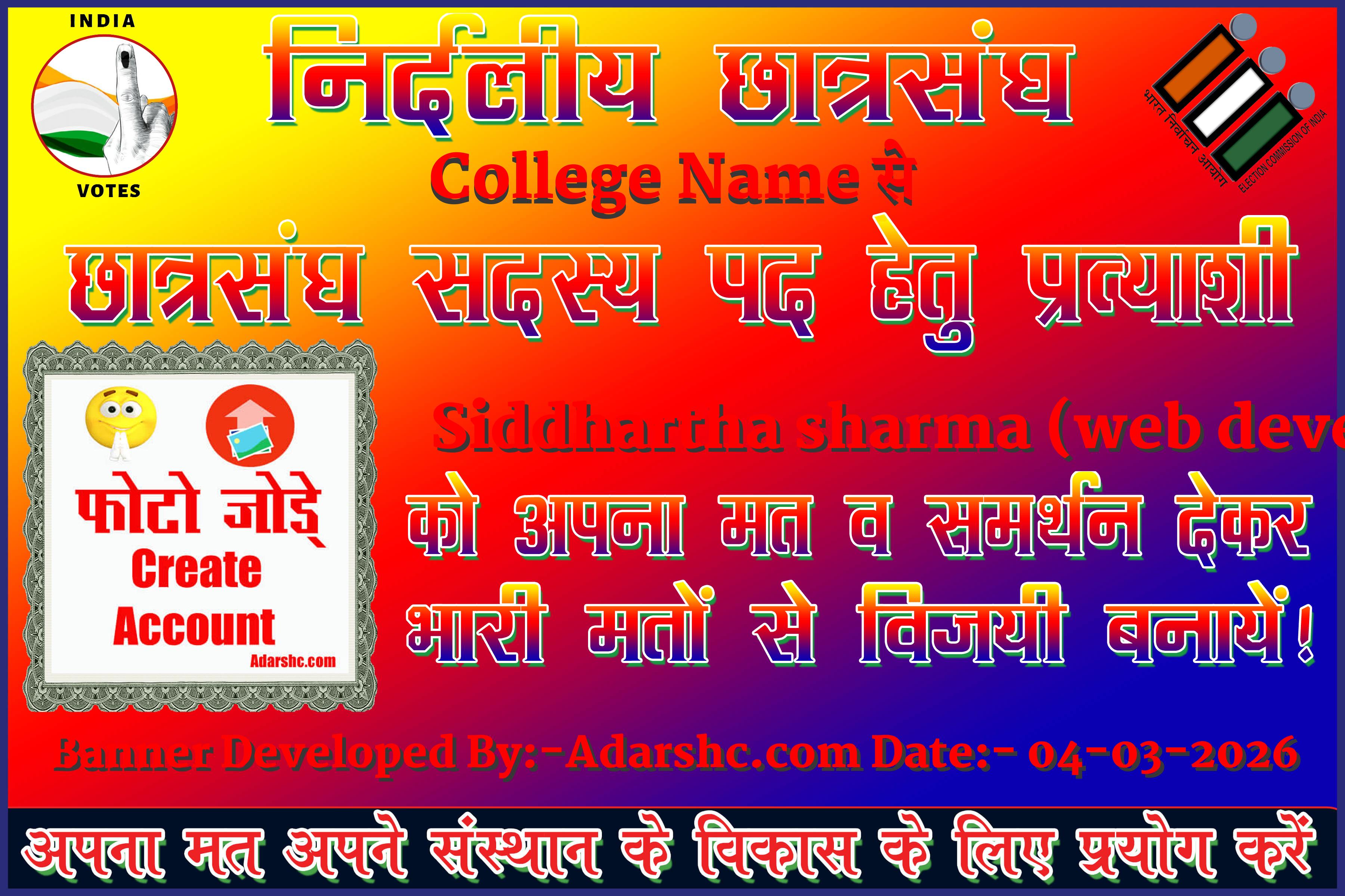 Note:- ईस बार के छात्र संघ चुनाव में कृप्या हमें जरुर Support करे, इसके लिये हम आपके प्रति आभार व्यक्त करते है |