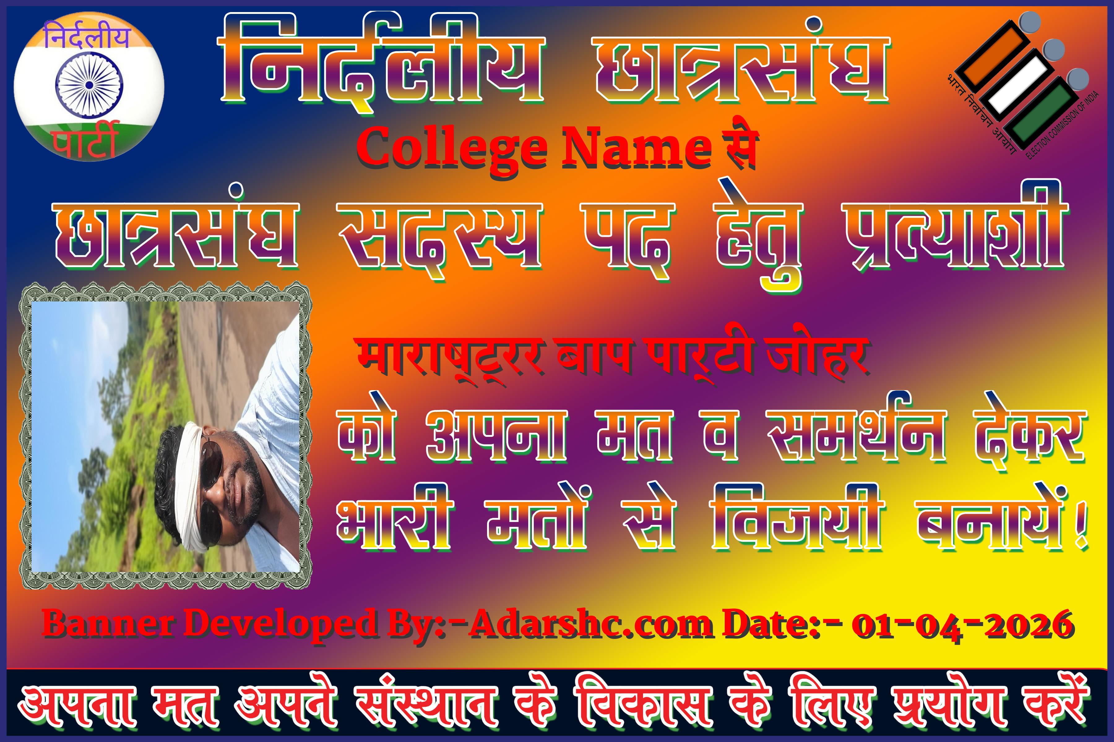Note:- ईस बार के छात्र संघ चुनाव में कृप्या हमें जरुर Support करे, इसके लिये हम आपके प्रति आभार व्यक्त करते है |