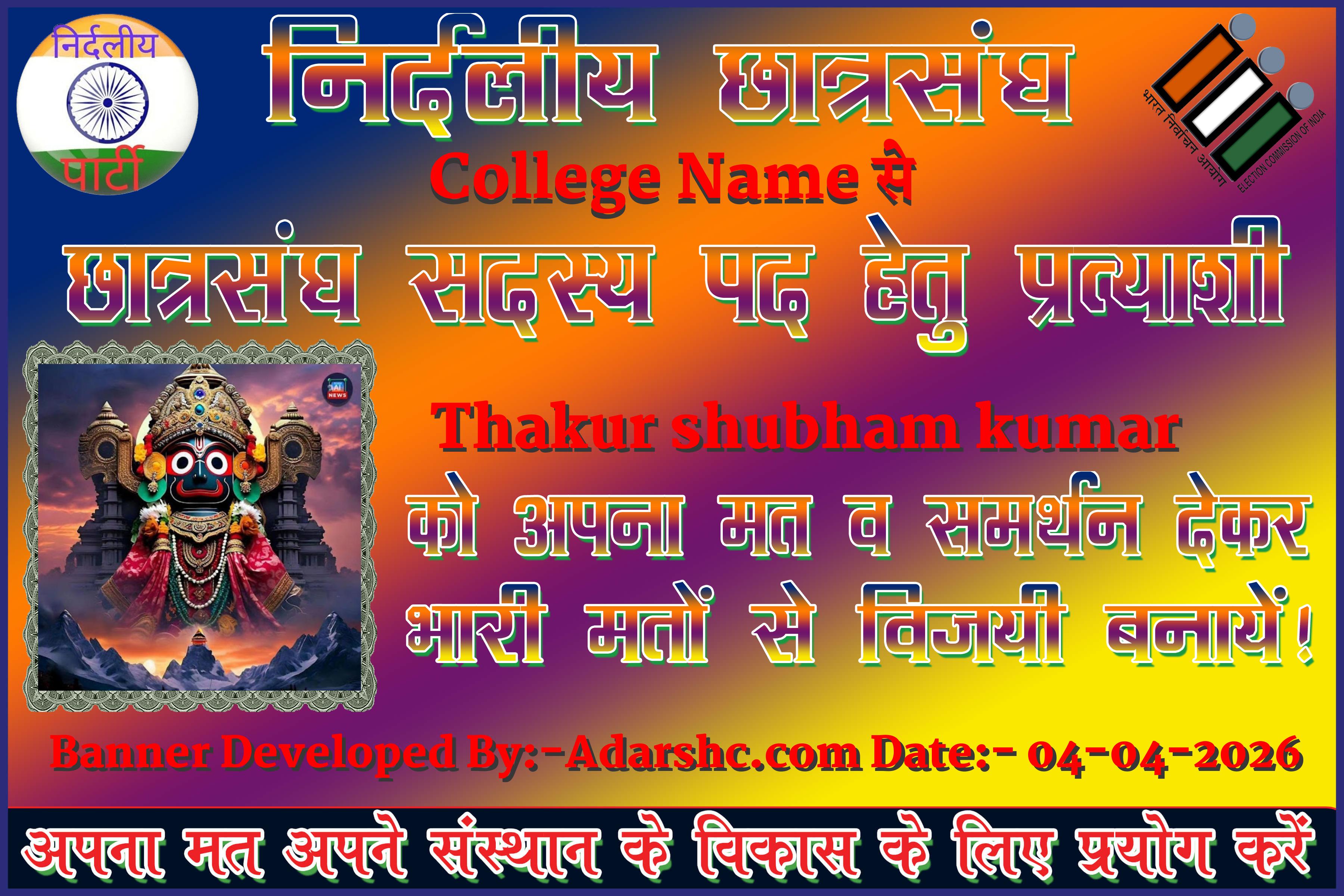Note:- ईस बार के छात्र संघ चुनाव में कृप्या हमें जरुर Support करे, इसके लिये हम आपके प्रति आभार व्यक्त करते है |