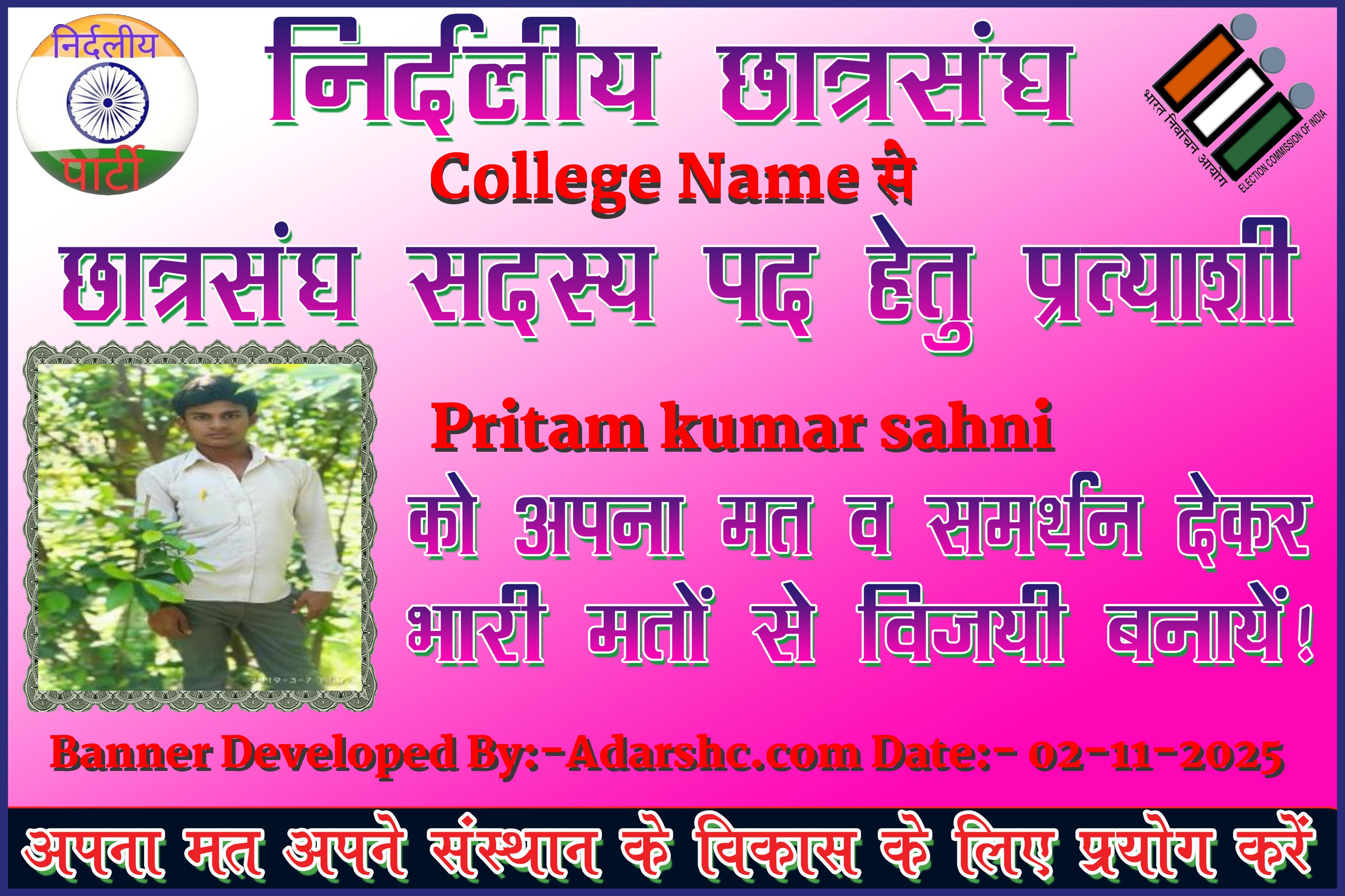 ☆ नमस्कार दोस्तों मेरा नाम Pritam kumar sahni है, मैं College Name का छात्र/छात्रा हूँ,