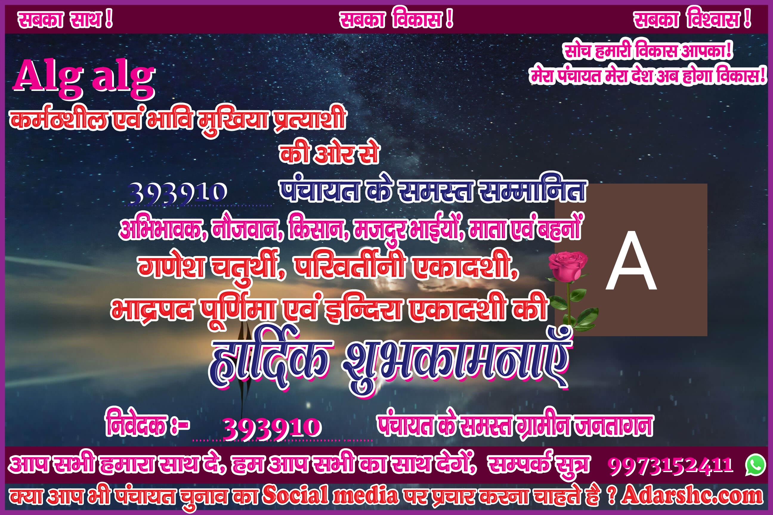 ♥ अगर आप भी पंचायत चुनाव में भाग लिये है ! तथा आप भी अपना ईस प्रकार से Social Media पर प्रचार कर अपने लोगों तक पहुँचना चाहते है, तो Sign up कर ID No. प्राप्त करे |