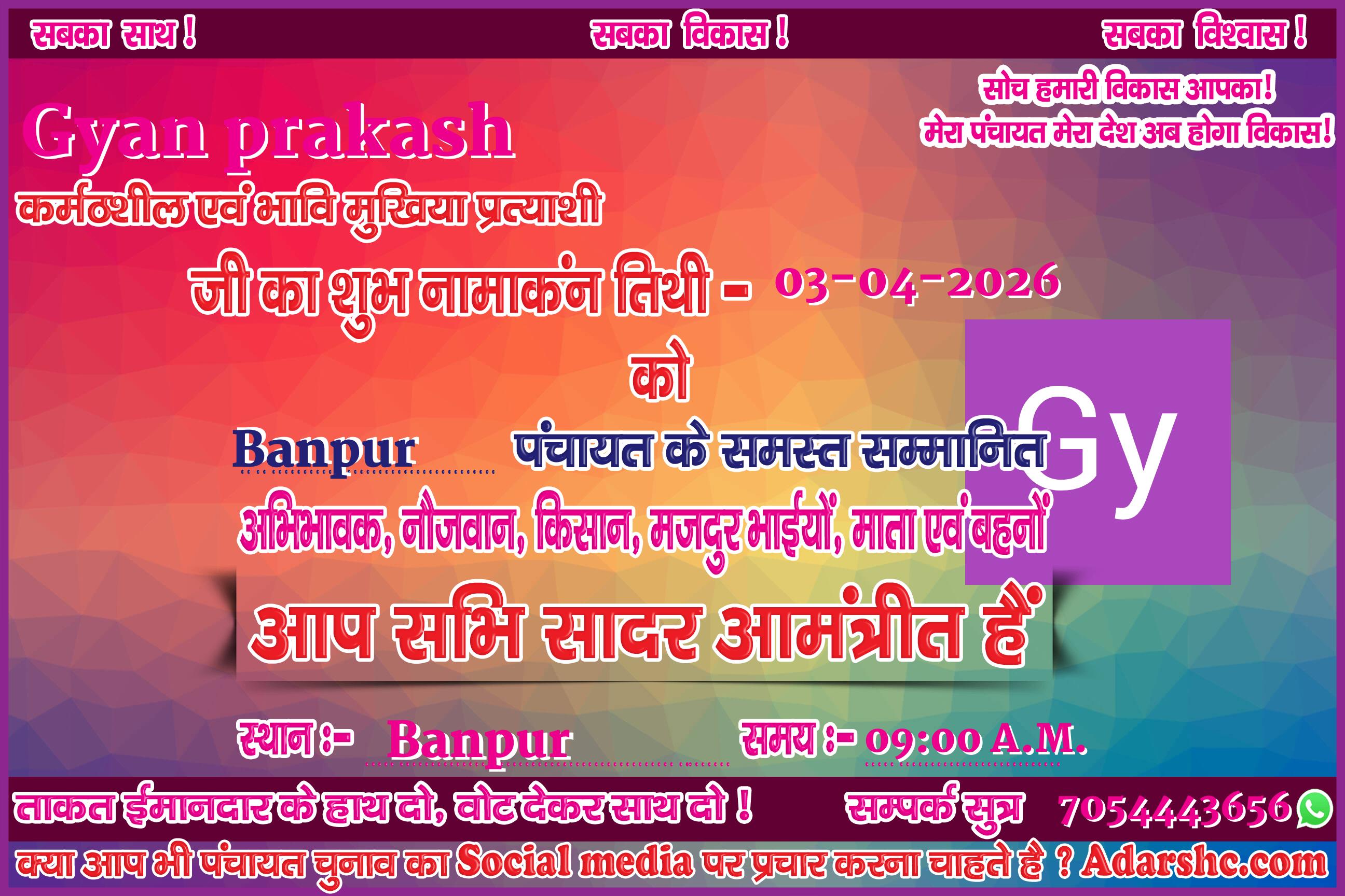Note:- ईस बार के पंचायत चुनाव में कृप्या हमें जरुर Support करे, इसके लिये हम आपके प्रति आभार व्यक्त करते है |