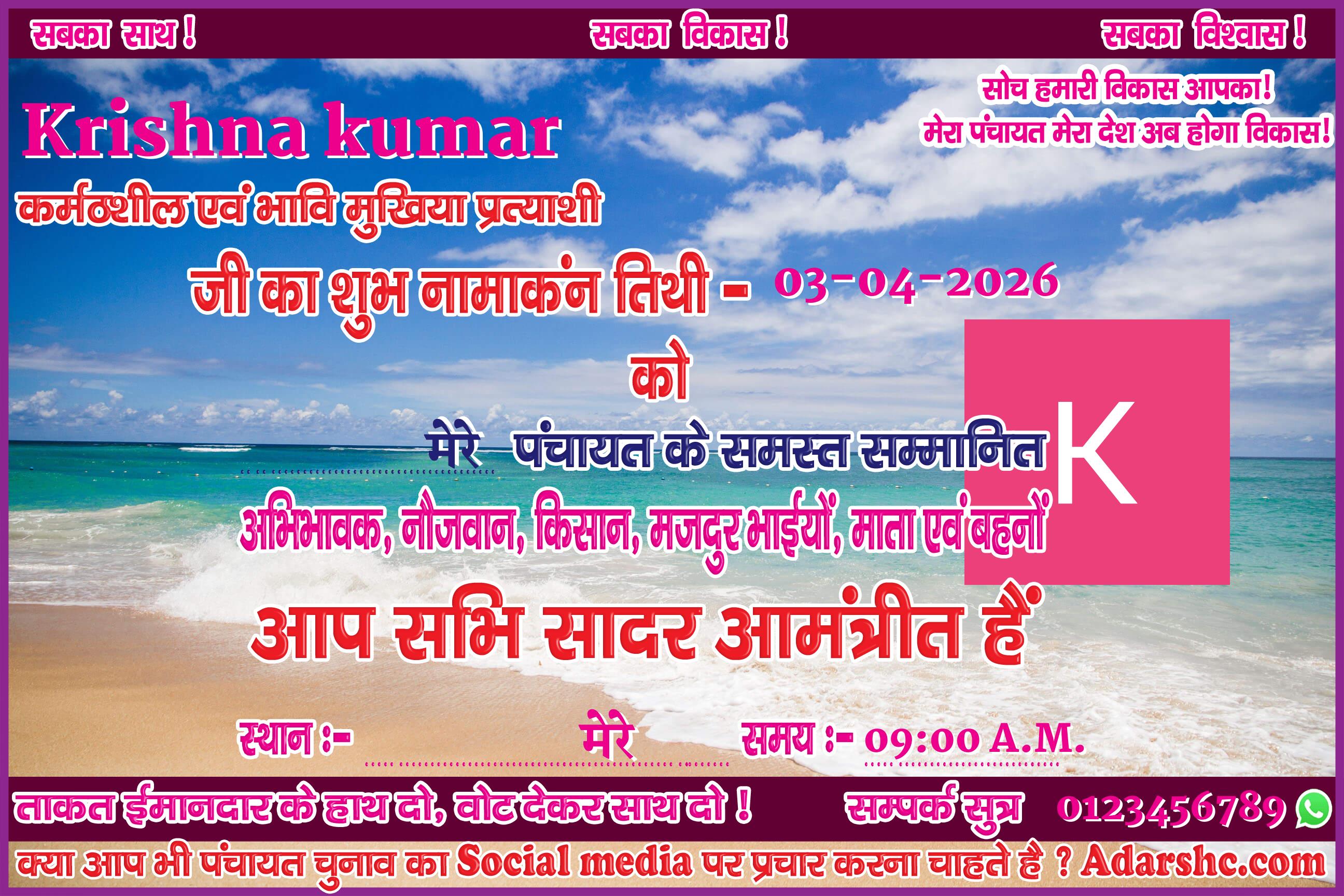 Note:- ईस बार के पंचायत चुनाव में कृप्या हमें जरुर Support करे, इसके लिये हम आपके प्रति आभार व्यक्त करते है |
