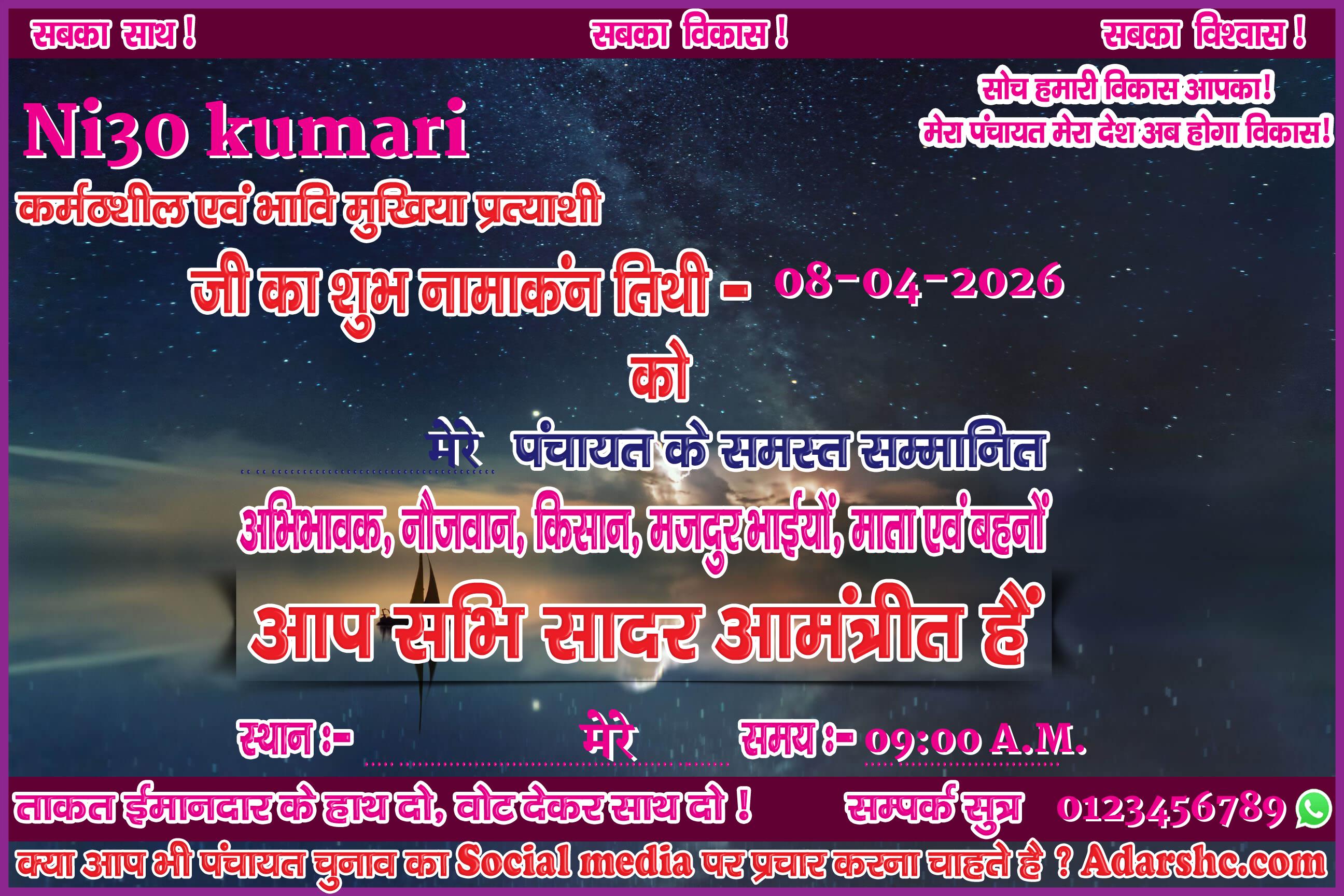 Note:- ईस बार के पंचायत चुनाव में कृप्या हमें जरुर Support करे, इसके लिये हम आपके प्रति आभार व्यक्त करते है |