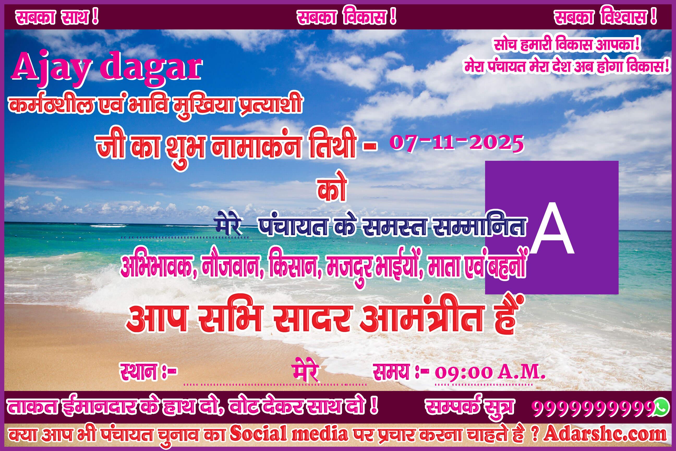 ♥ अगर आप भी पंचायत चुनाव में भाग लिये है ! तथा आप भी अपना ईस प्रकार से Social Media पर प्रचार कर अपने लोगों तक पहुँचना चाहते है, तो Sign up कर ID No. प्राप्त करे |
