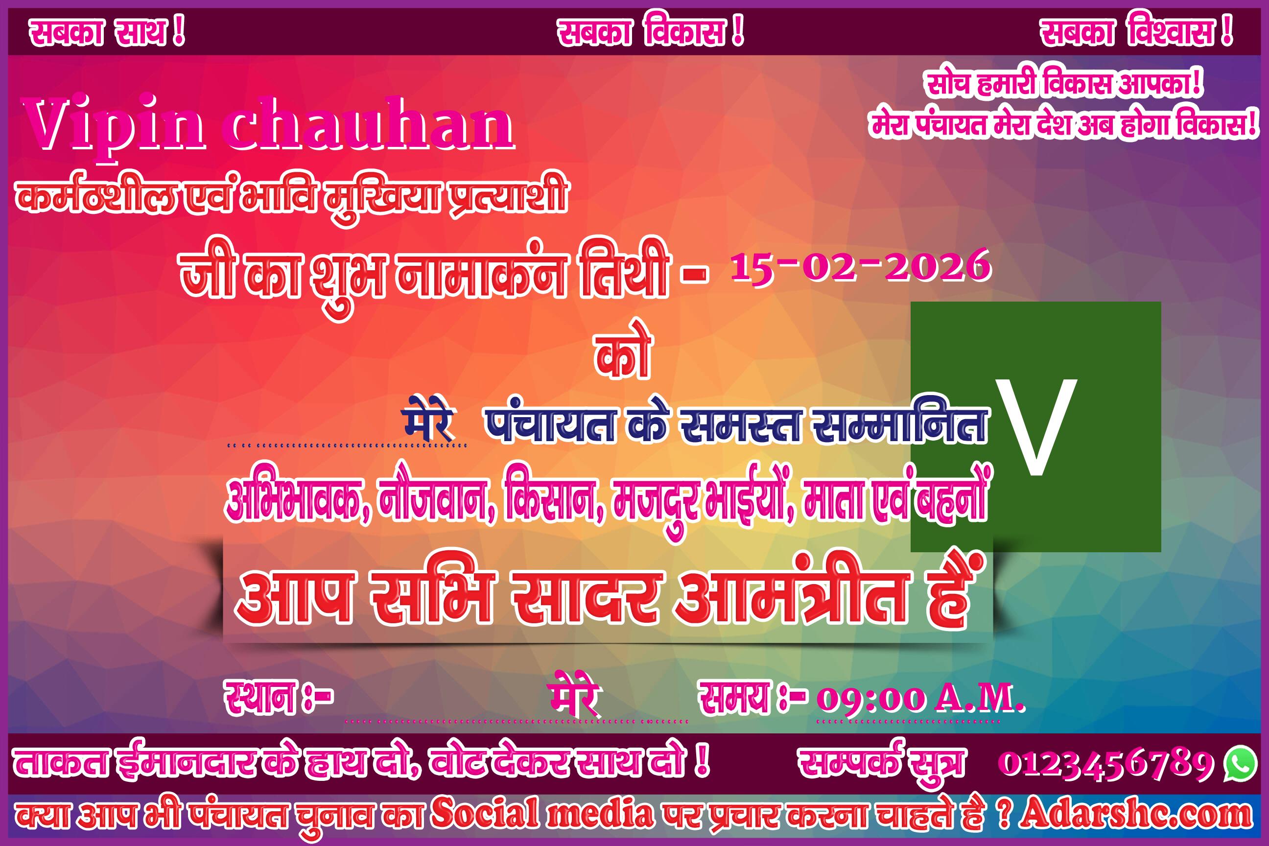 ♥ अगर आप भी पंचायत चुनाव में भाग लिये है ! तथा आप भी अपना ईस प्रकार से Social Media पर प्रचार कर अपने लोगों तक पहुँचना चाहते है, तो Sign up कर ID No. प्राप्त करे |