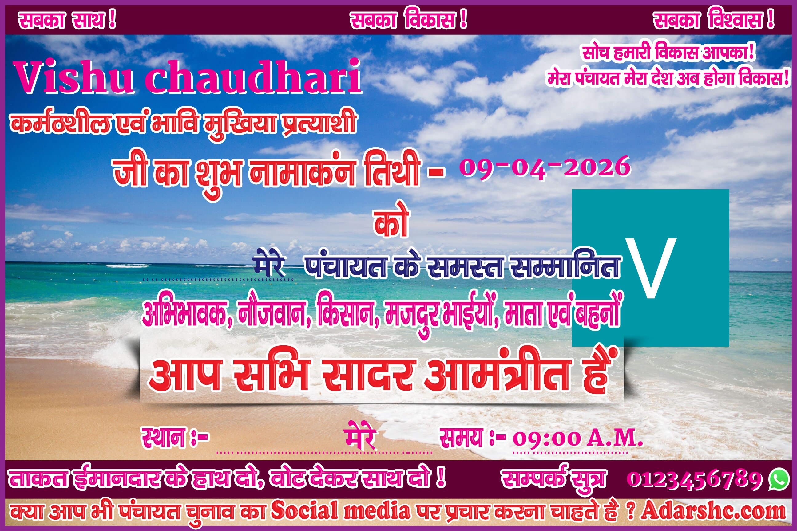 ♥ अगर आप भी पंचायत चुनाव में भाग लिये है ! तथा आप भी अपना ईस प्रकार से Social Media पर प्रचार कर अपने लोगों तक पहुँचना चाहते है, तो Sign up कर ID No. प्राप्त करे |
