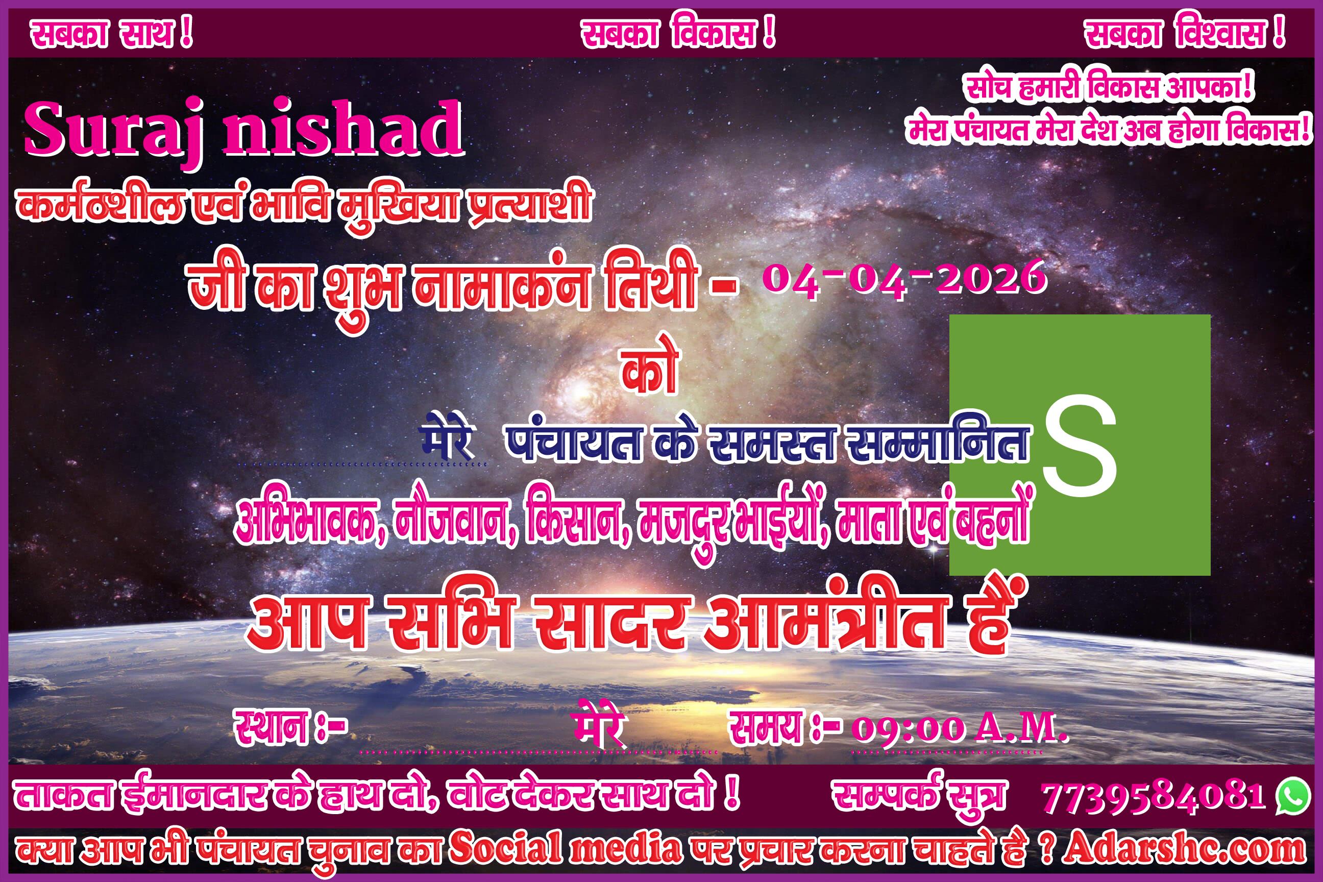 Note:- ईस बार के पंचायत चुनाव में कृप्या हमें जरुर Support करे, इसके लिये हम आपके प्रति आभार व्यक्त करते है |