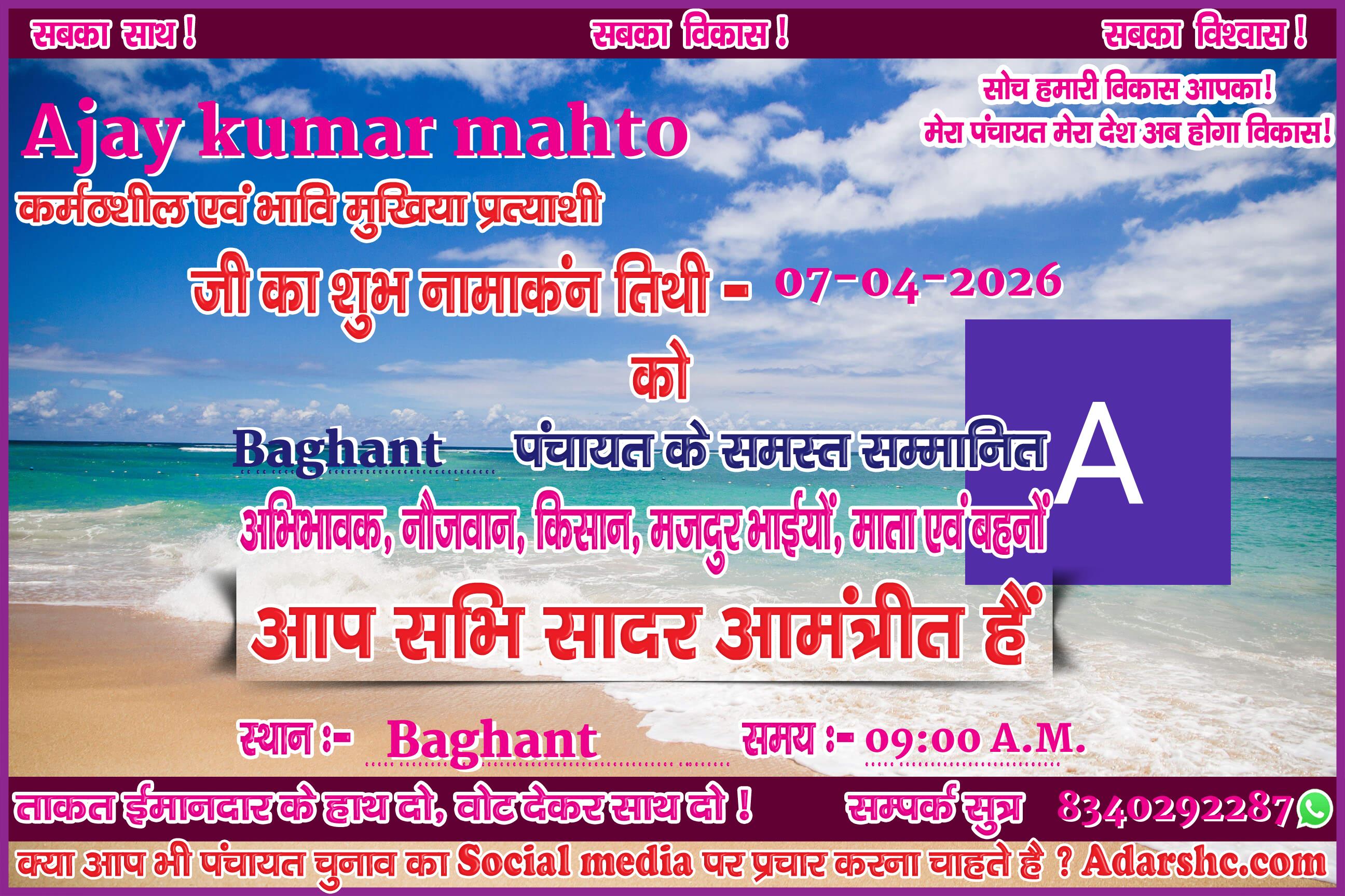 Note:- ईस बार के पंचायत चुनाव में कृप्या हमें जरुर Support करे, इसके लिये हम आपके प्रति आभार व्यक्त करते है |