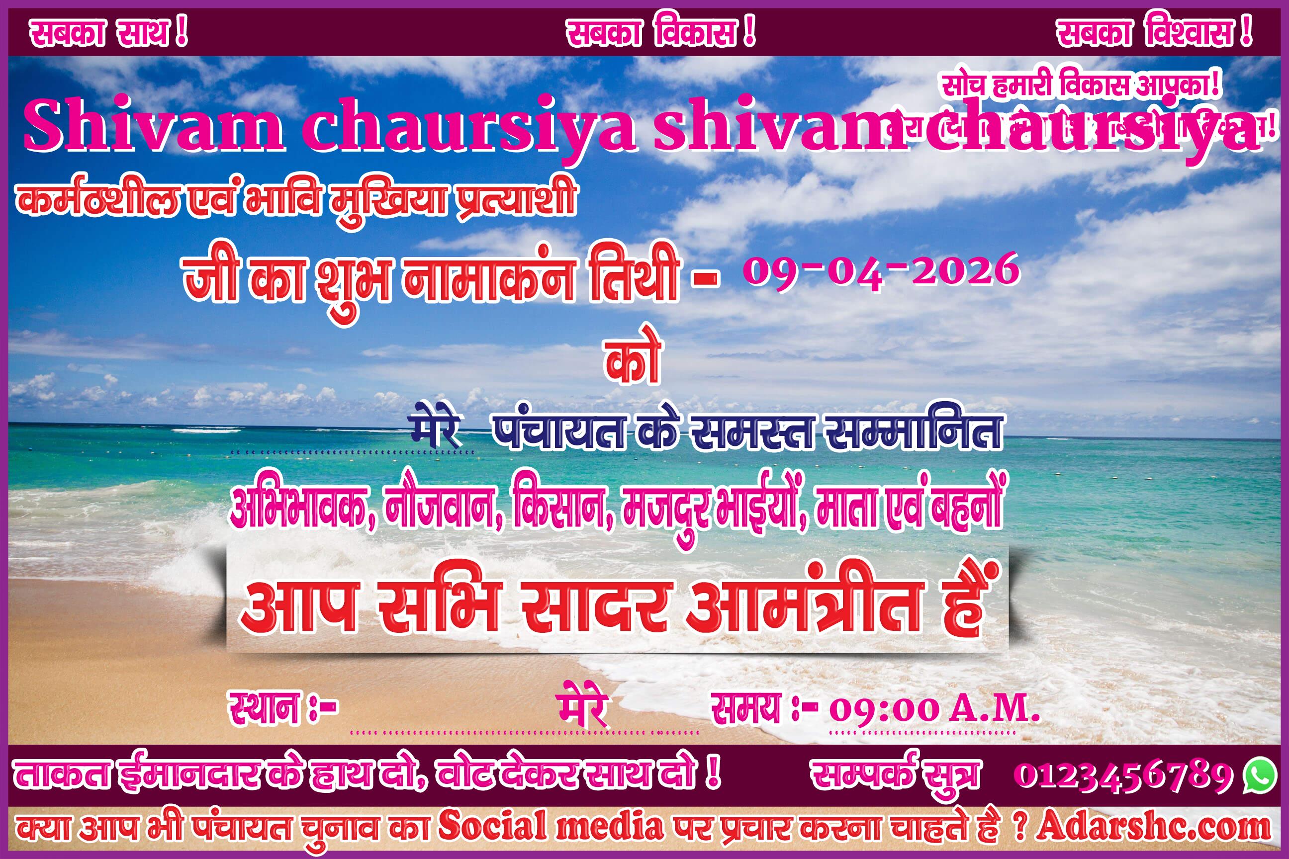 ♥ अगर आप भी पंचायत चुनाव में भाग लिये है ! तथा आप भी अपना ईस प्रकार से Social Media पर प्रचार कर अपने लोगों तक पहुँचना चाहते है, तो Sign up कर ID No. प्राप्त करे |