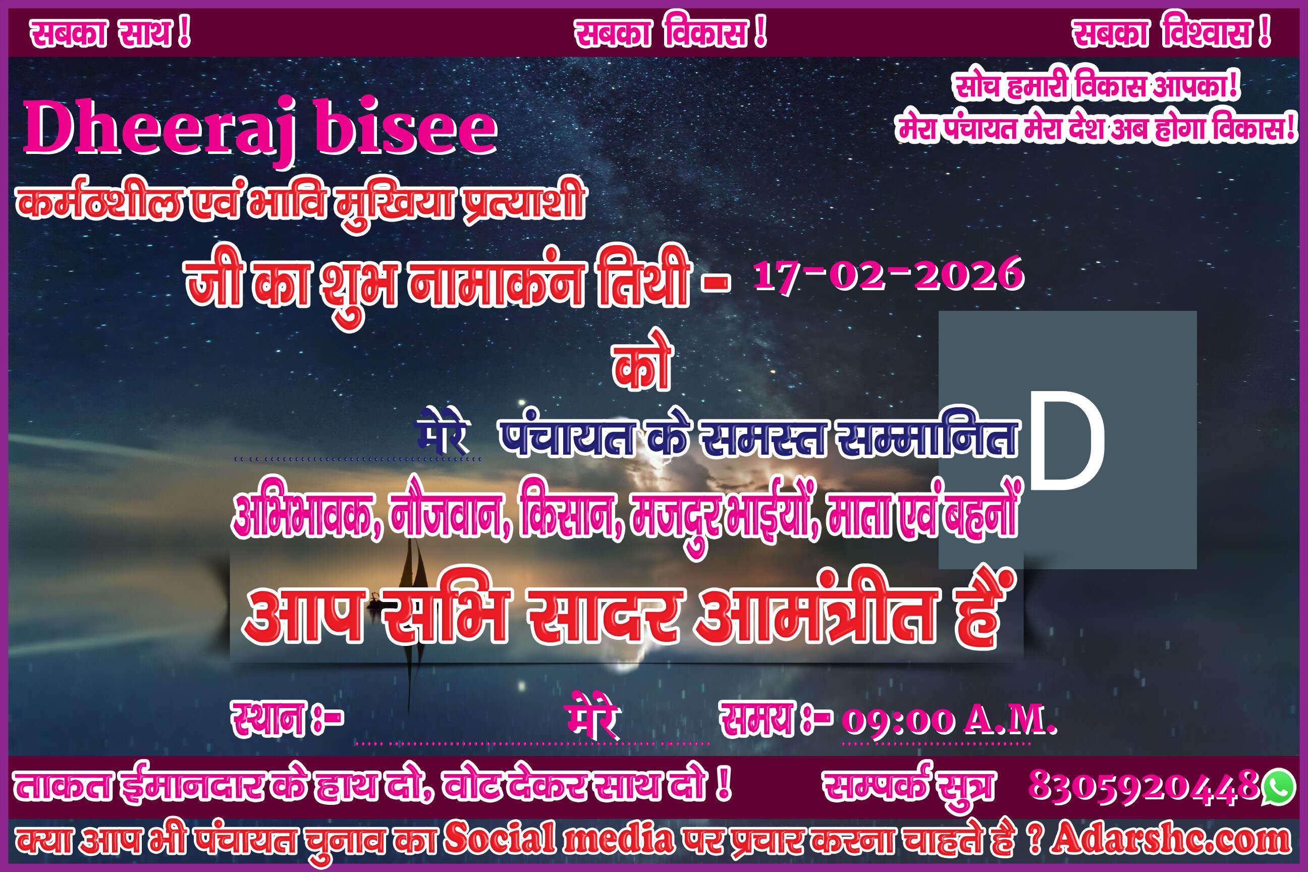 Note:- ईस बार के पंचायत चुनाव में कृप्या हमें जरुर Support करे, इसके लिये हम आपके प्रति आभार व्यक्त करते है |