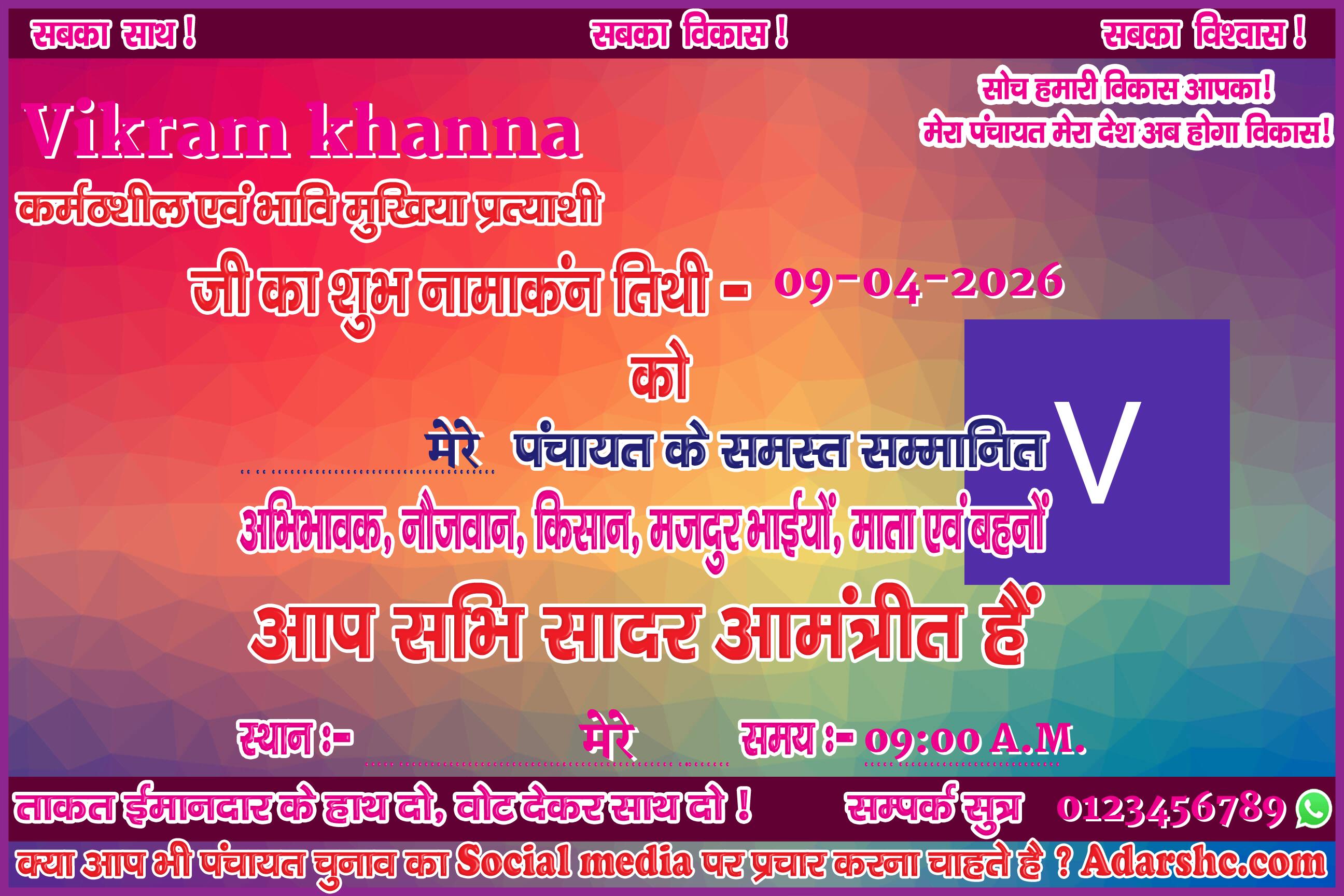 ♥ अगर आप भी पंचायत चुनाव में भाग लिये है ! तथा आप भी अपना ईस प्रकार से Social Media पर प्रचार कर अपने लोगों तक पहुँचना चाहते है, तो Sign up कर ID No. प्राप्त करे |