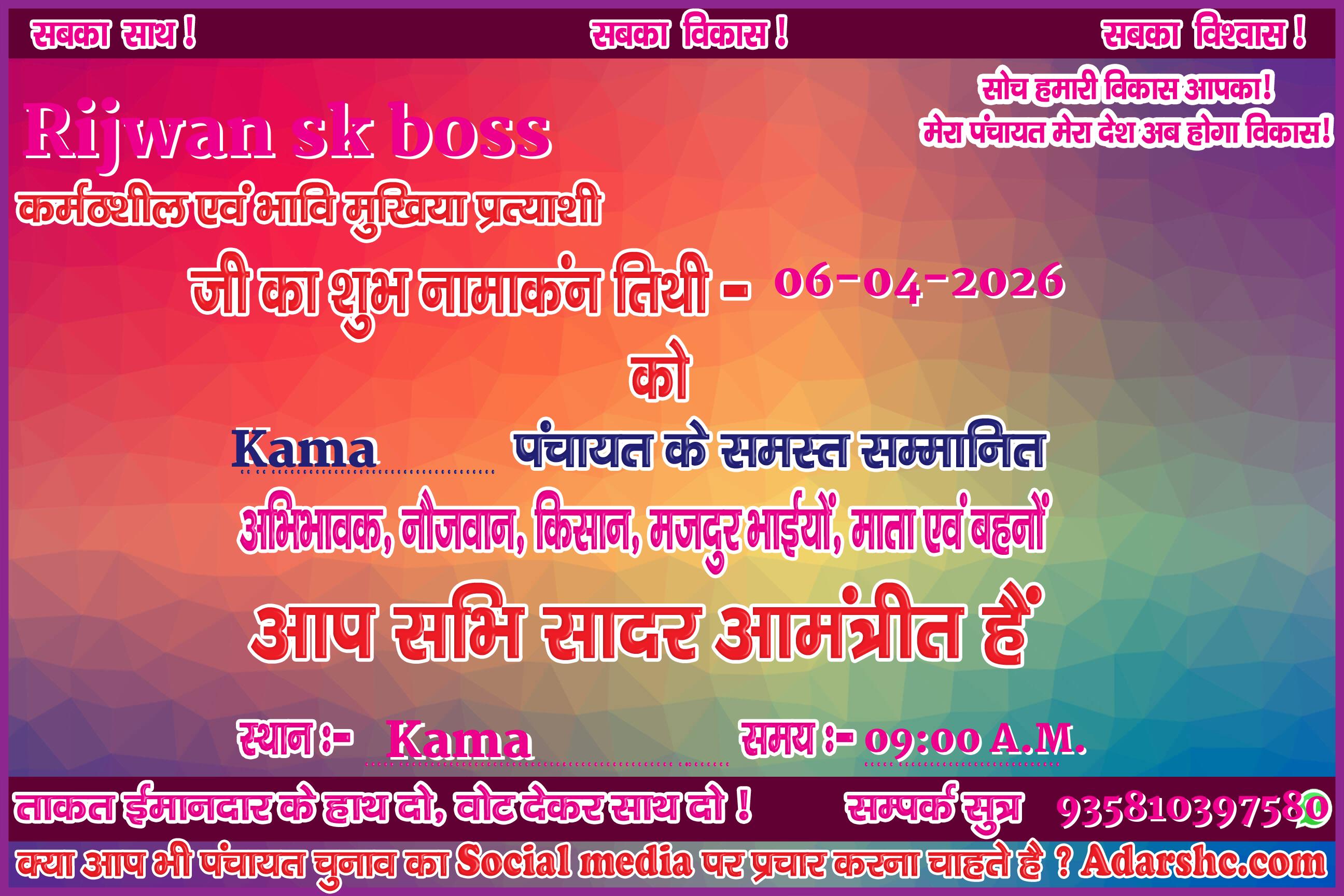 Note:- ईस बार के पंचायत चुनाव में कृप्या हमें जरुर Support करे, इसके लिये हम आपके प्रति आभार व्यक्त करते है |