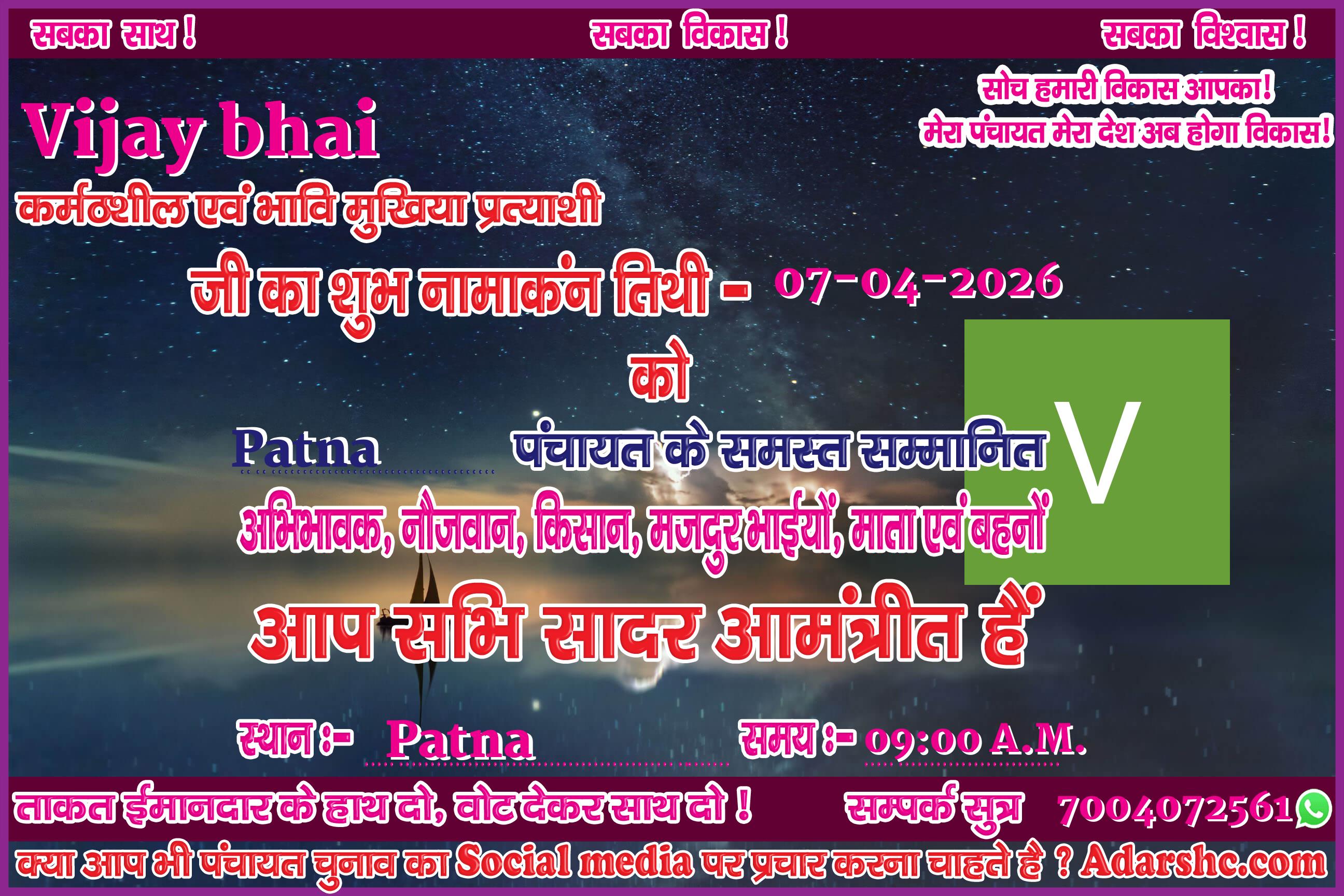 Note:- ईस बार के पंचायत चुनाव में कृप्या हमें जरुर Support करे, इसके लिये हम आपके प्रति आभार व्यक्त करते है |