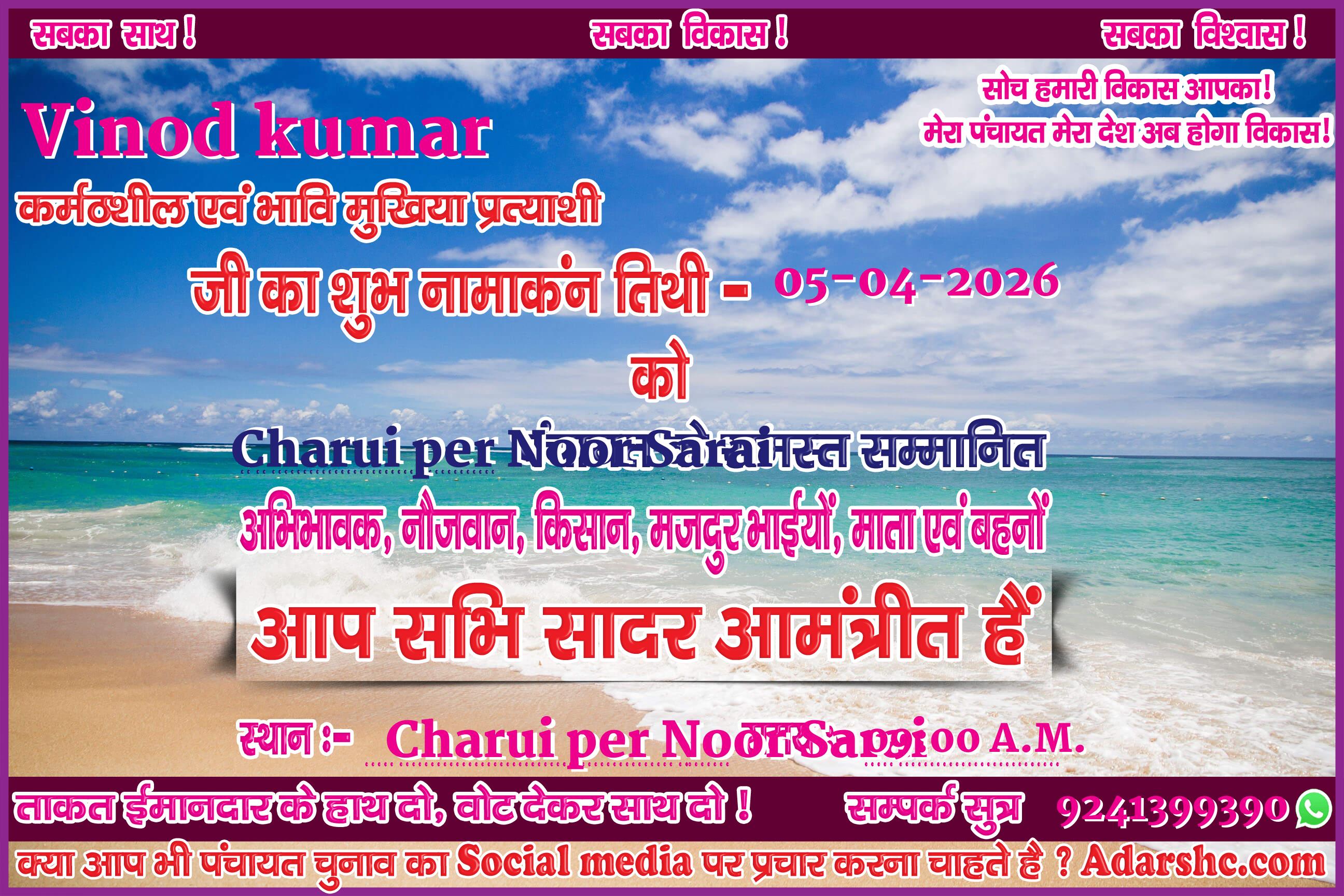 Note:- ईस बार के पंचायत चुनाव में कृप्या हमें जरुर Support करे, इसके लिये हम आपके प्रति आभार व्यक्त करते है |