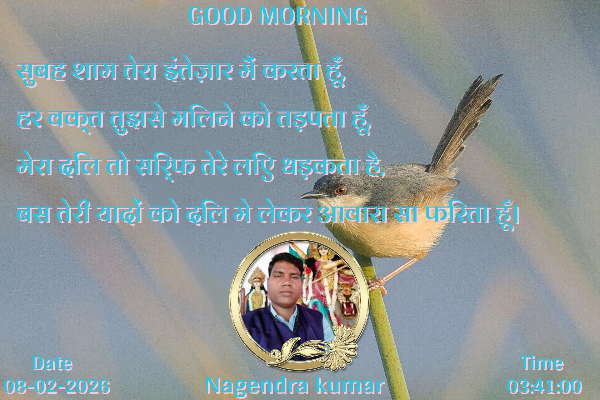 सुबह शाम तेरा इंतेज़ार मैं करता हूँ, हर वक्त तुझसे मिलने को तड़पता हूँ, मेरा दिल तो सिर्फ तेरे लिए धड़कता है, बस तेरी यादों को दिल मे लेकर आवारा सा फिरता हूँ।