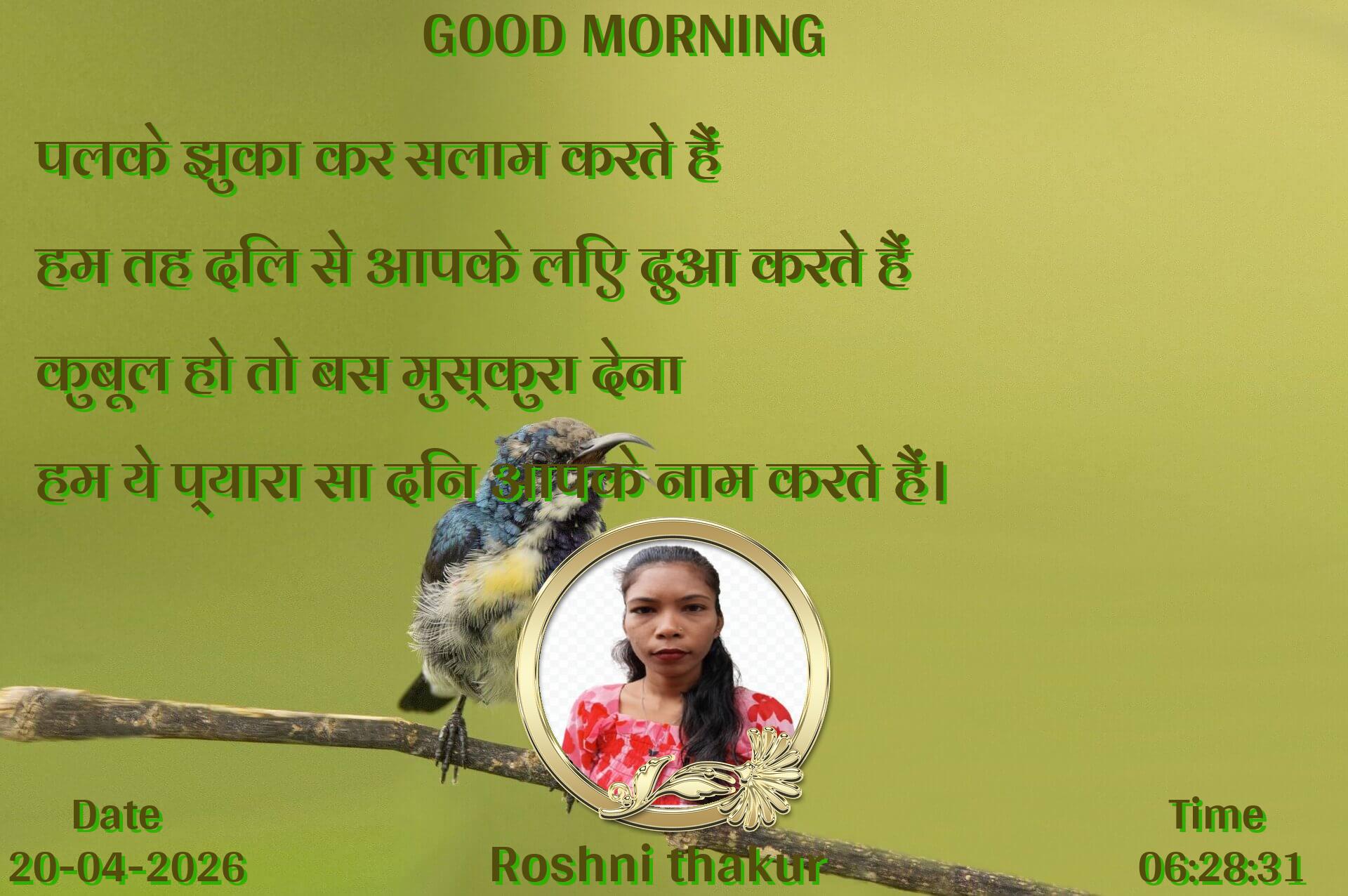 पलके झुका कर सलाम करते हैं हम तह दिल से आपके लिए दुआ करते हैं कुबूल हो तो बस मुस्कुरा देना हम ये प्यारा सा दिन आपके नाम करते हैं।
