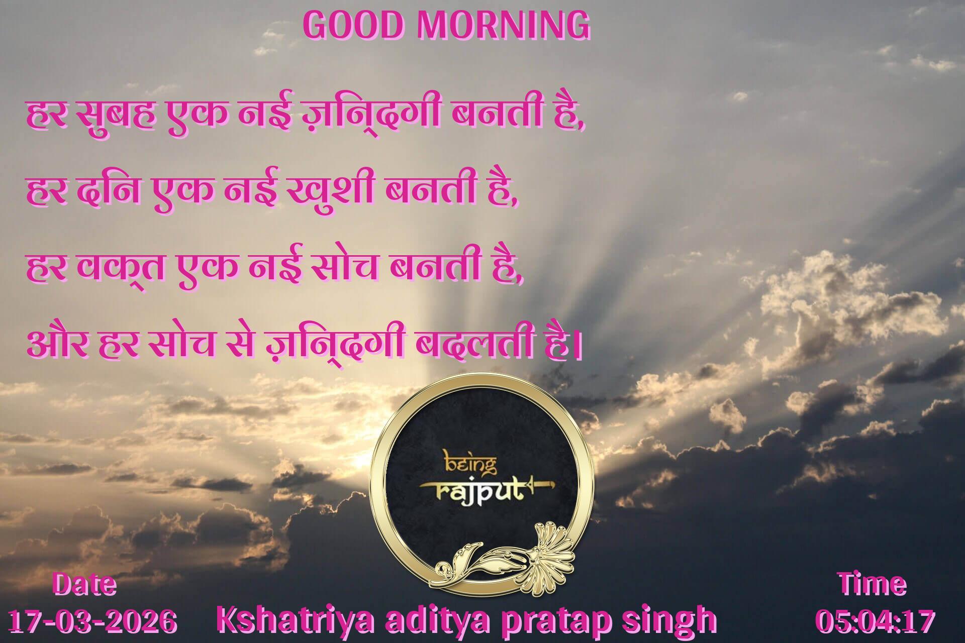 हर सुबह एक नई ज़िन्दगी बनती है, हर दिन एक नई खुशी बनती है, हर वक्त एक नई सोच बनती है, और हर सोच से ज़िन्दगी बदलती है।