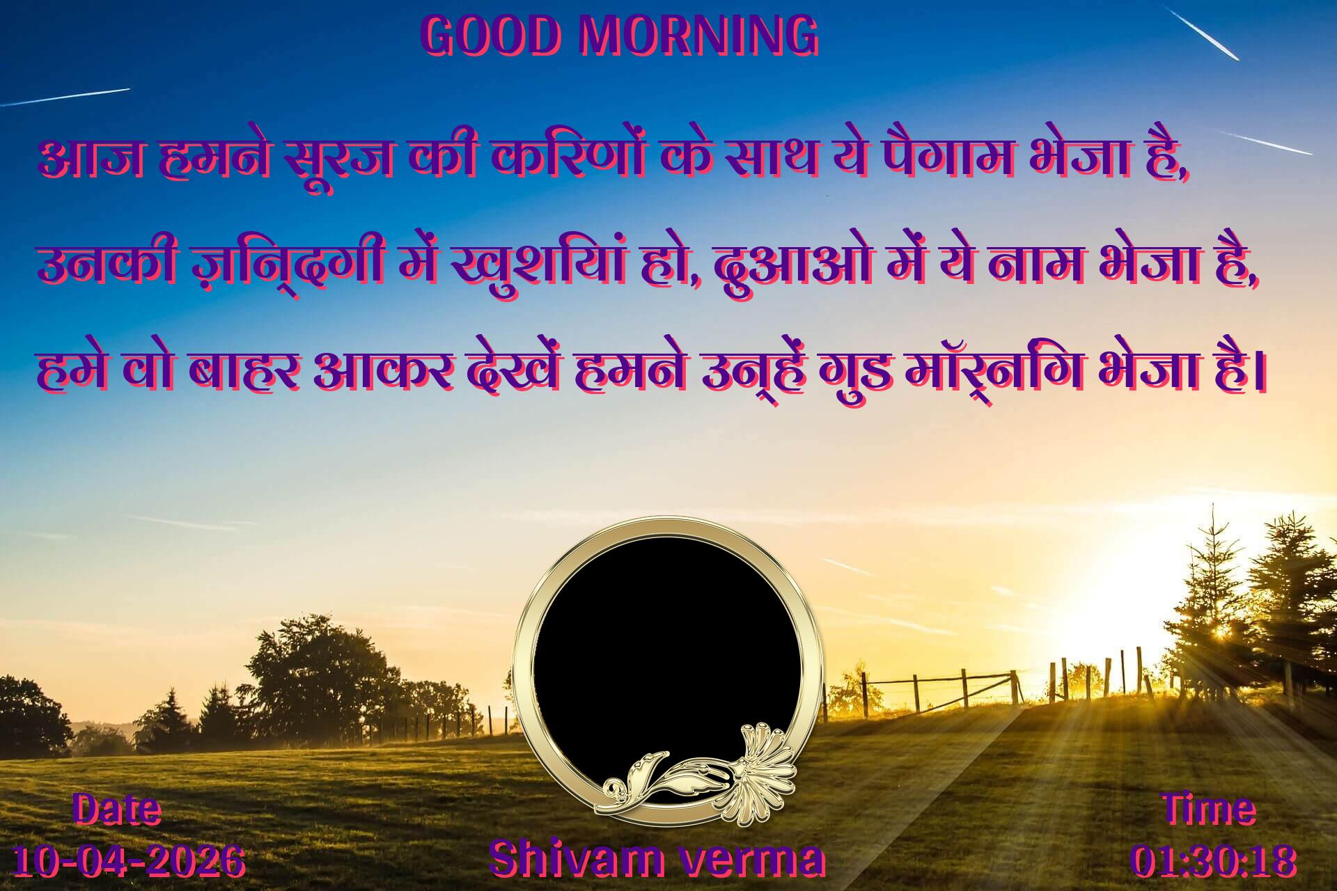 आज हमने सूरज की किरणों के साथ ये पैगाम भेजा है, उनकी ज़िन्दगी में खुशियां हो, दुआओ में ये नाम भेजा है, हमे वो बाहर आकर देखें हमने उन्हें गुड मॉर्निंग भेजा है।
