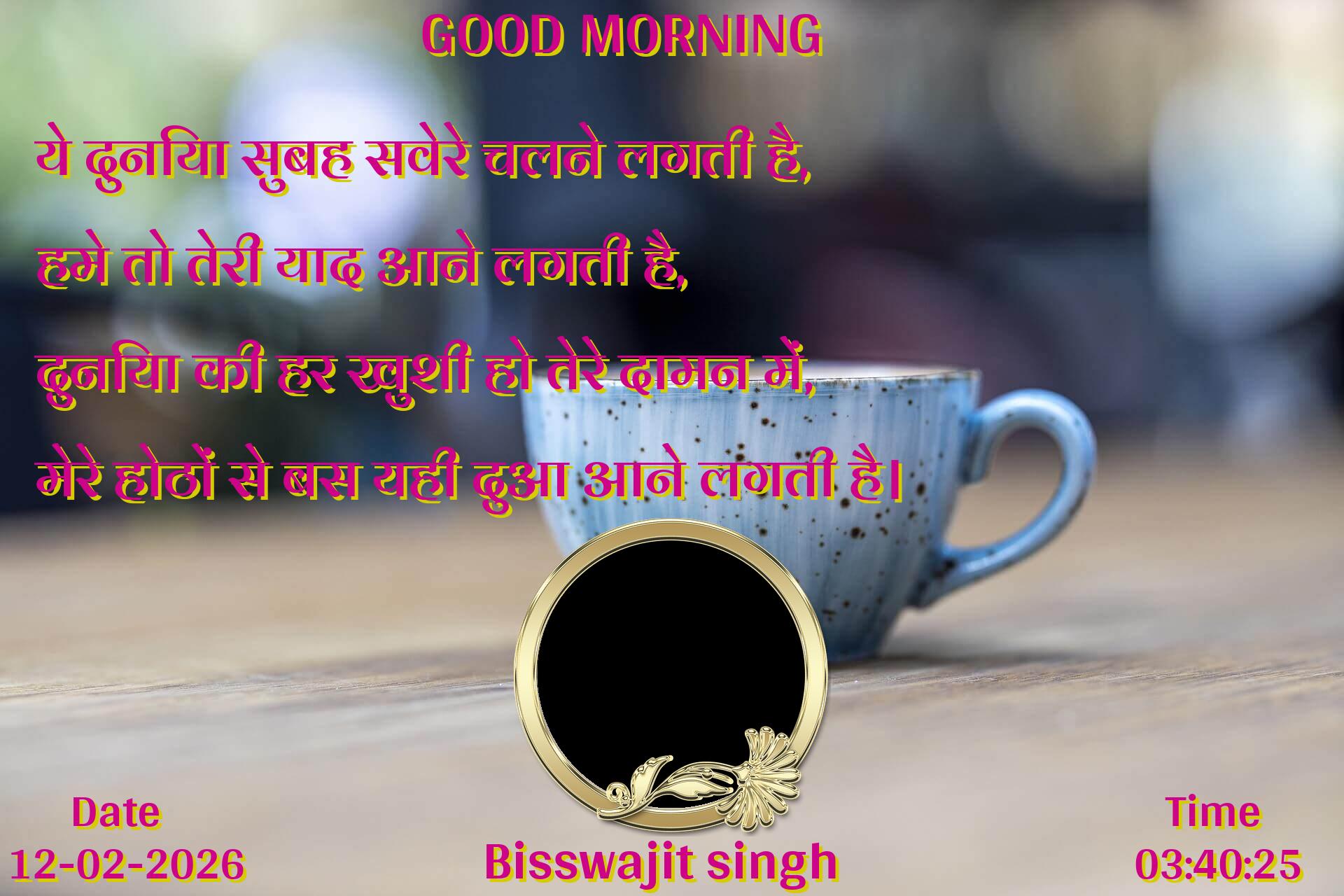 ये दुनिया सुबह सवेरे चलने लगती है, हमे तो तेरी याद आने लगती है, दुनिया की हर खुशी हो तेरे दामन में, मेरे होठों से बस यही दुआ आने लगती है।
