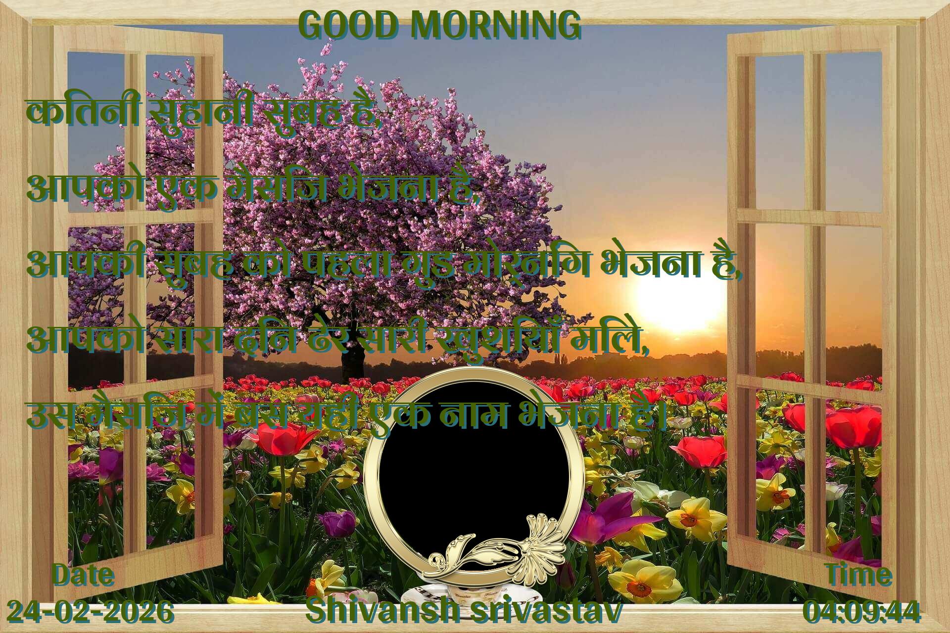 कितनी सुहानी सुबह है, आपको एक मैसिज भेजना है, आपकी सुबह को पहला गुड मोर्निंग भेजना है, आपको सारा दिन ढेर सारी खुशियाँ मिले, उस मैसिज में बस यही एक नाम भेजना है।