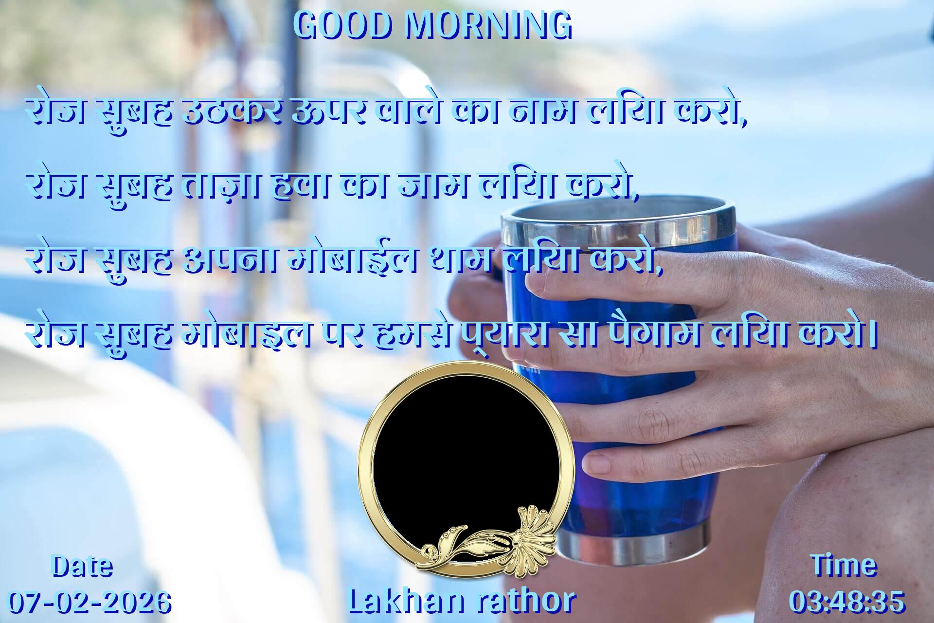 रोज सुबह उठकर ऊपर वाले का नाम लिया करो, रोज सुबह ताज़ा हवा का जाम लिया करो, रोज सुबह अपना मोबाईल थाम लिया करो, रोज सुबह मोबाइल पर हमसे प्यारा सा पैगाम लिया करो।