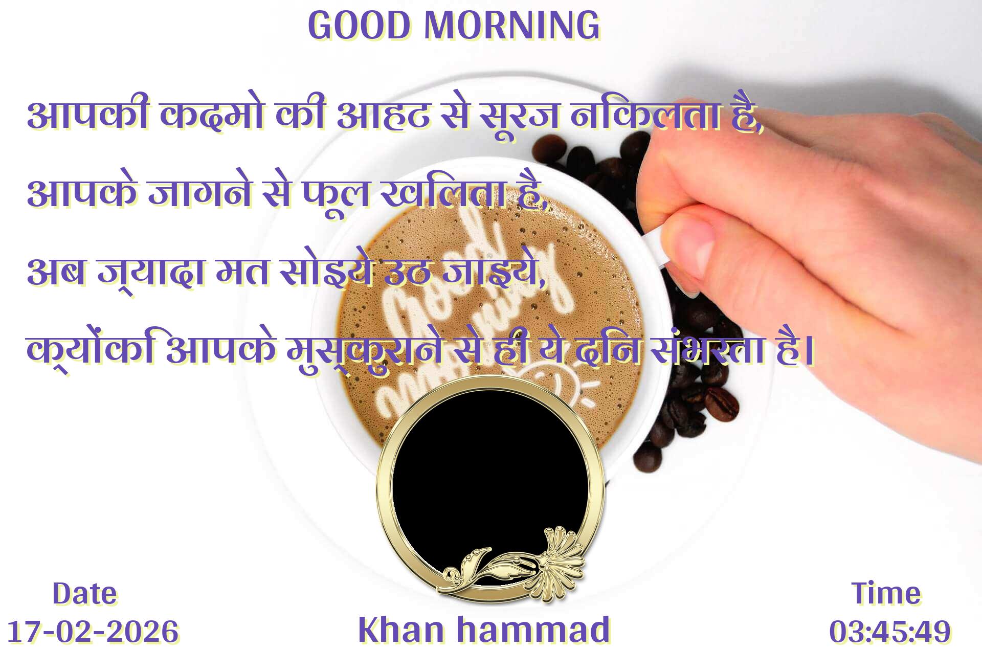 आपकी कदमो की आहट से सूरज निकलता है, आपके जागने से फूल खिलता है, अब ज्यादा मत सोइये उठ जाइये, क्योंकि आपके मुस्कुराने से ही ये दिन संभरता है।
