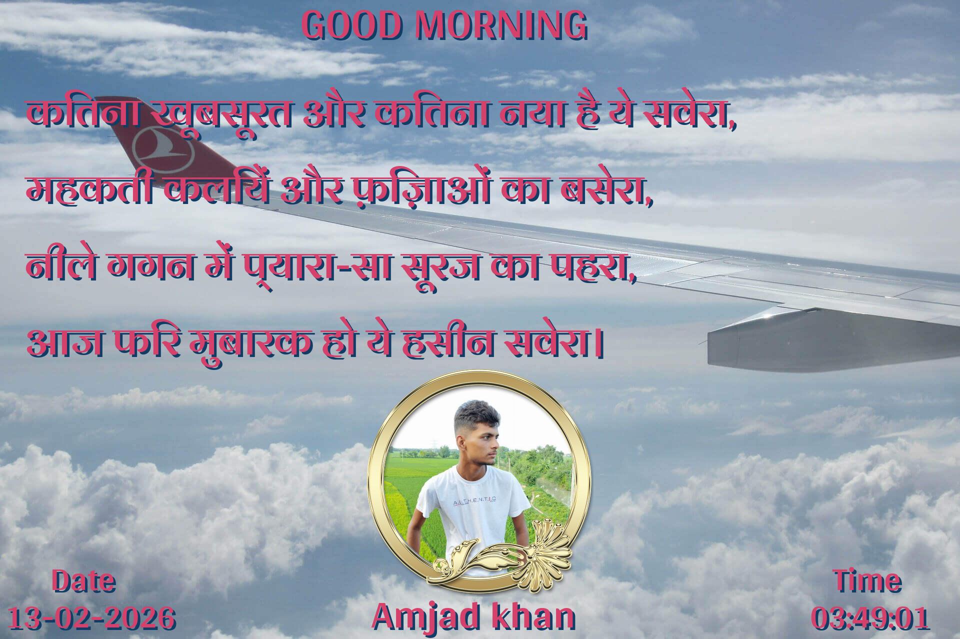 कितना खूबसूरत और कितना नया है ये सवेरा, महकती कलियें और फ़िज़ाओं का बसेरा, नीले गगन में प्यारा-सा सूरज का पहरा, आज फिर मुबारक हो ये हसीन सवेरा।