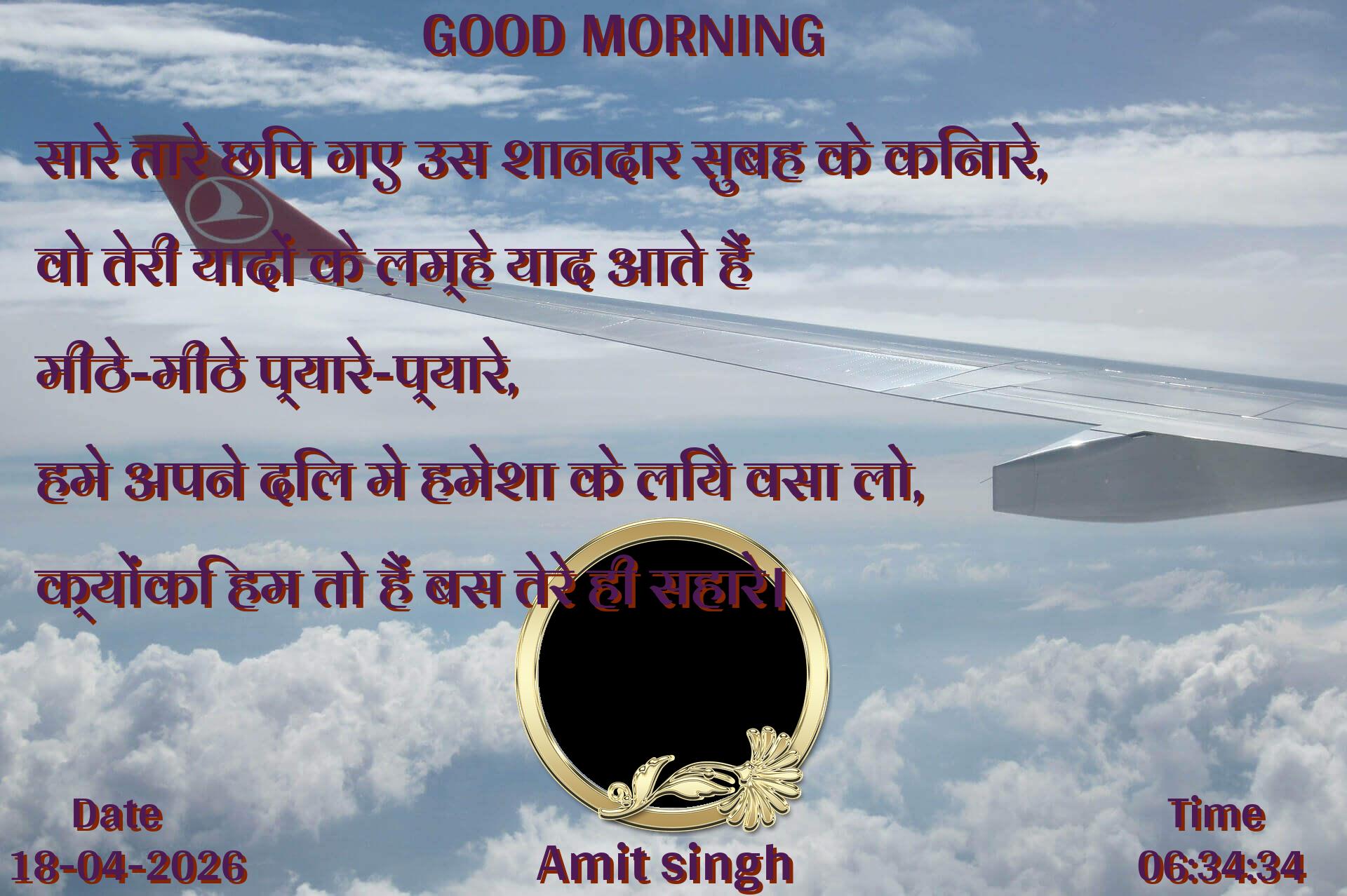 सारे तारे छिप गए उस शानदार सुबह के किनारे, वो तेरी यादों के लम्हे याद आते हैं मीठे-मीठे प्यारे-प्यारे, हमे अपने दिल मे हमेशा के लिये वसा लो, क्योंकि हम तो हैं बस तेरे ही सहारे।