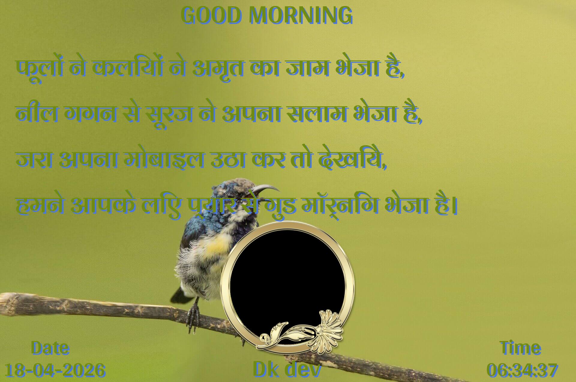 फूलों ने कलियों ने अमृत का जाम भेजा है, नील गगन से सूरज ने अपना सलाम भेजा है, जरा अपना मोबाइल उठा कर तो देखिये, हमने आपके लिए प्यार से गुड मॉर्निंग भेजा है।