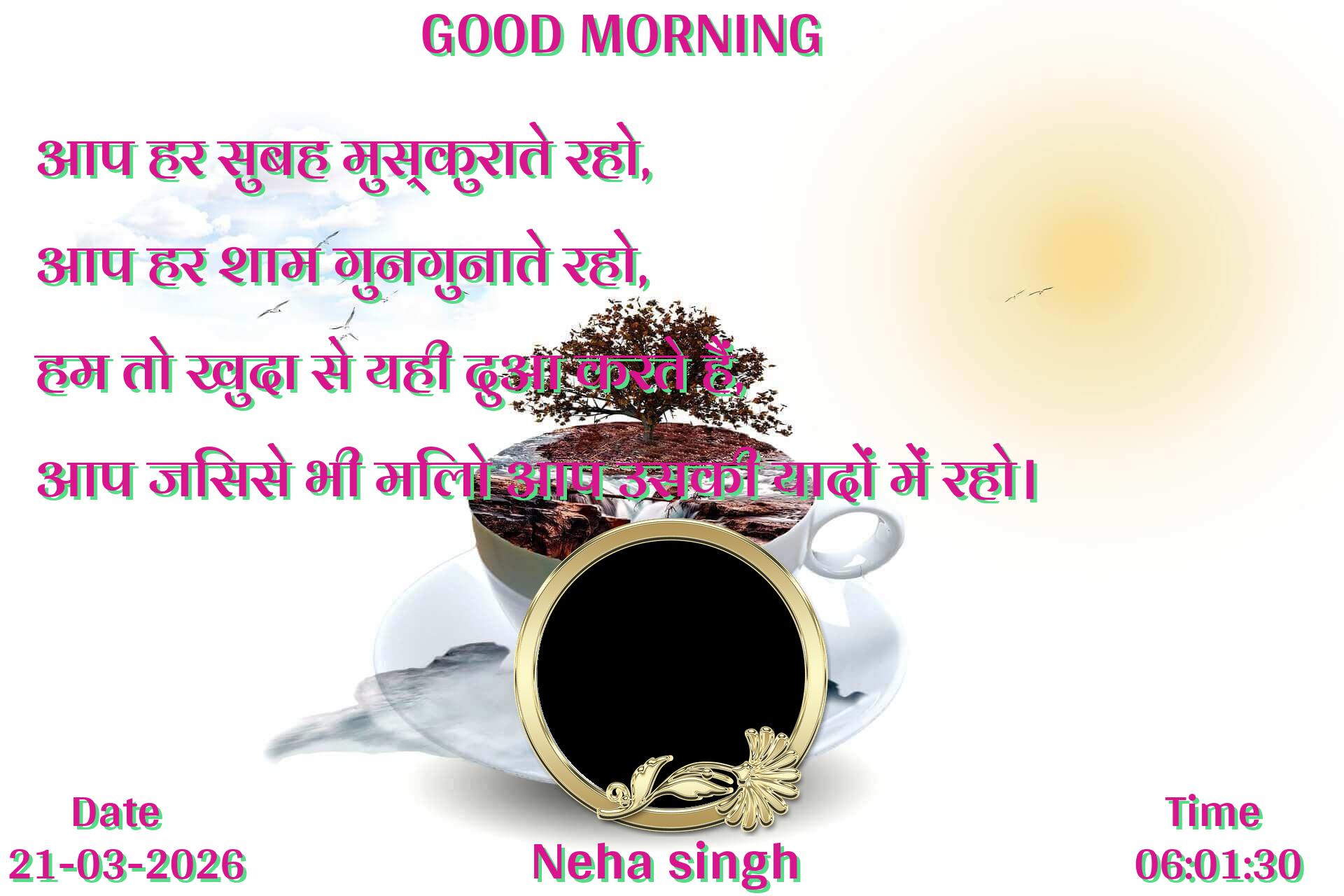 आप हर सुबह मुस्कुराते रहो, आप हर शाम गुनगुनाते रहो, हम तो खुदा से यही दुआ करते हैं, आप जिससे भी मिलो आप उसकी यादों में रहो।