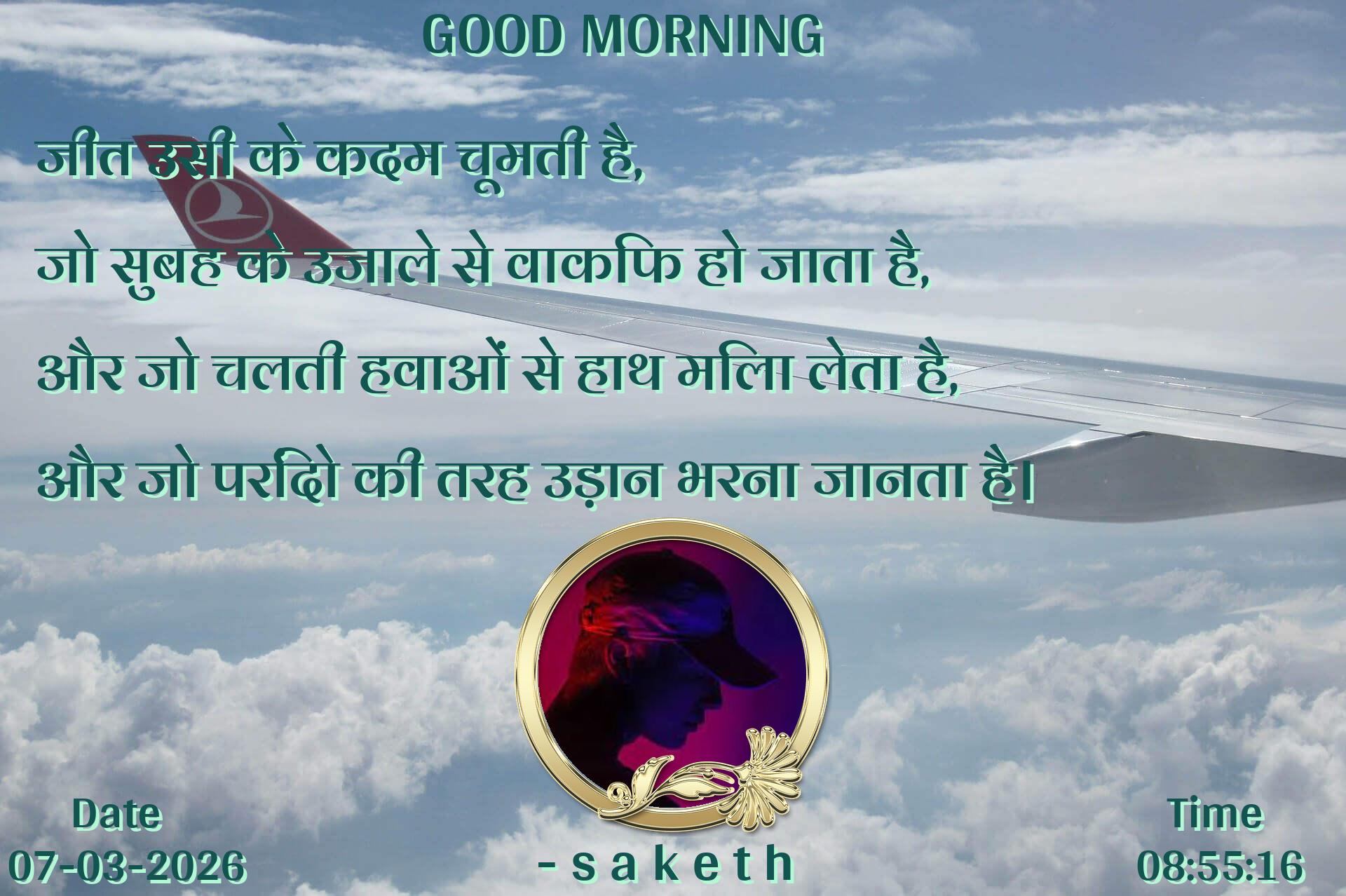 जीत उसी के कदम चूमती है, जो सुबह के उजाले से वाकिफ हो जाता है, और जो चलती हवाओं से हाथ मिला लेता है, और जो परिंदो की तरह उड़ान भरना जानता है।
