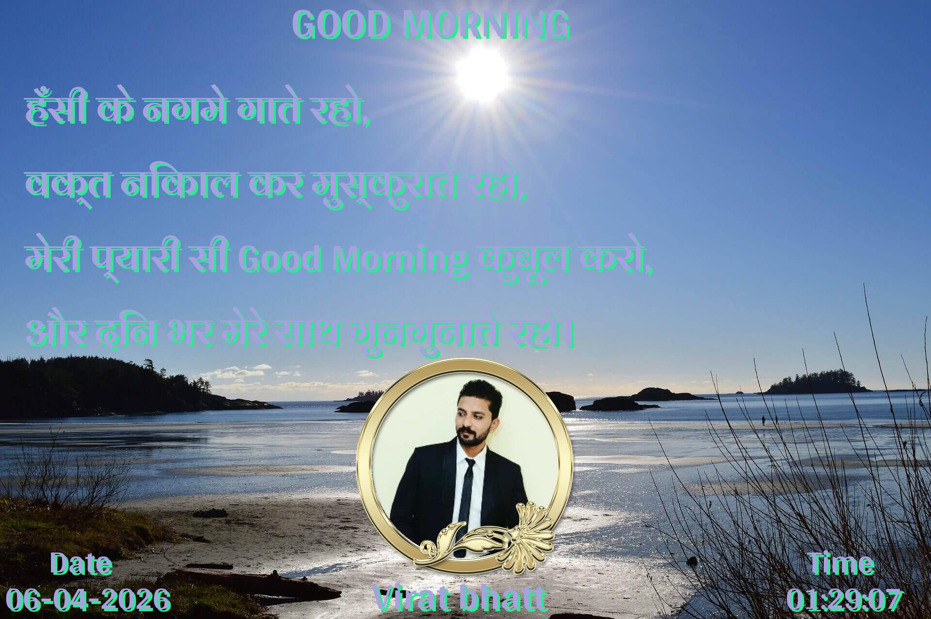 हँसी के नगमे गाते रहो, वक्त निकाल कर मुस्कुराते रहो, मेरी प्यारी सी Good Morning कुबूल करो, और दिन भर मेरे साथ गुनगुनाते रहो।