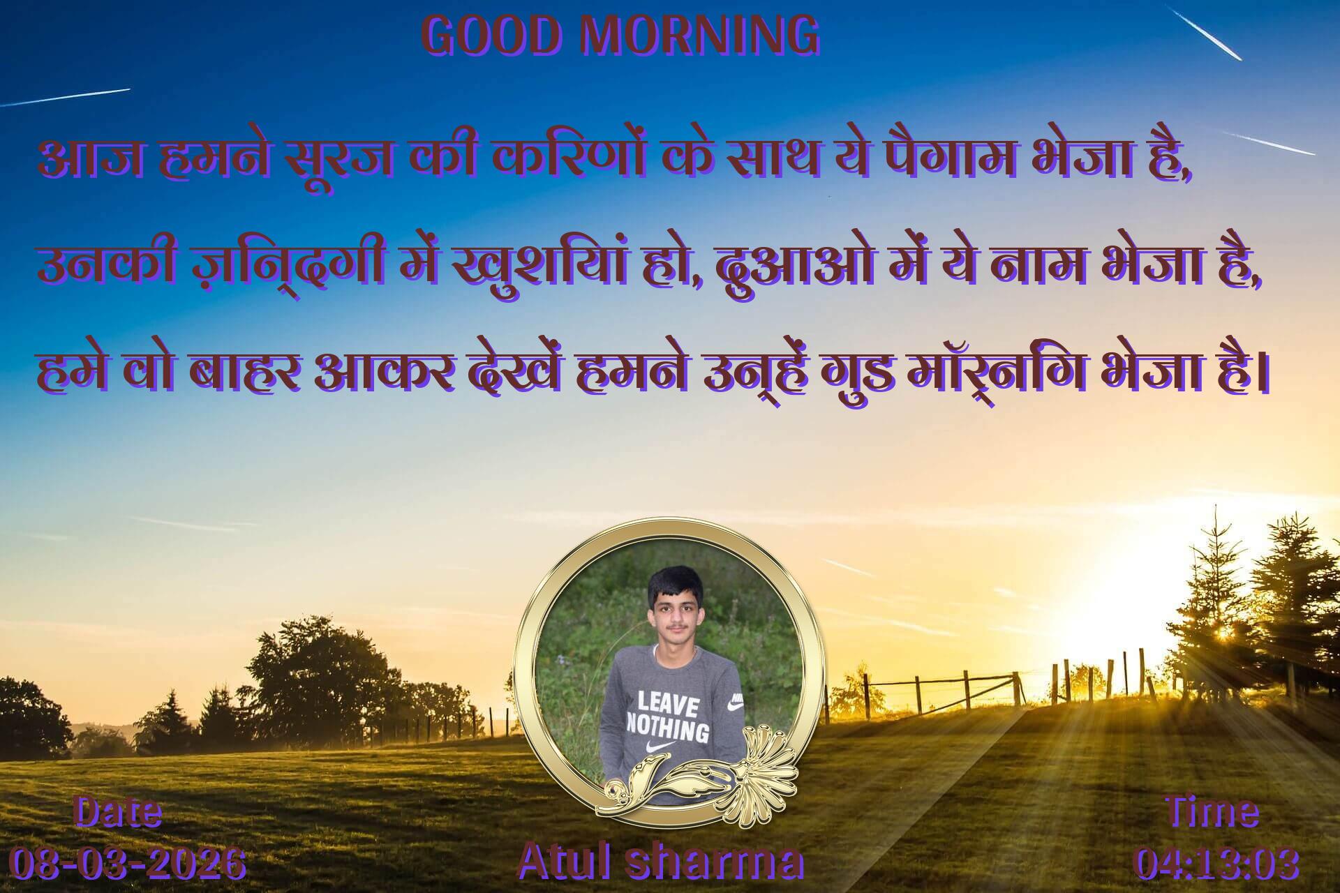 आज हमने सूरज की किरणों के साथ ये पैगाम भेजा है, उनकी ज़िन्दगी में खुशियां हो, दुआओ में ये नाम भेजा है, हमे वो बाहर आकर देखें हमने उन्हें गुड मॉर्निंग भेजा है।