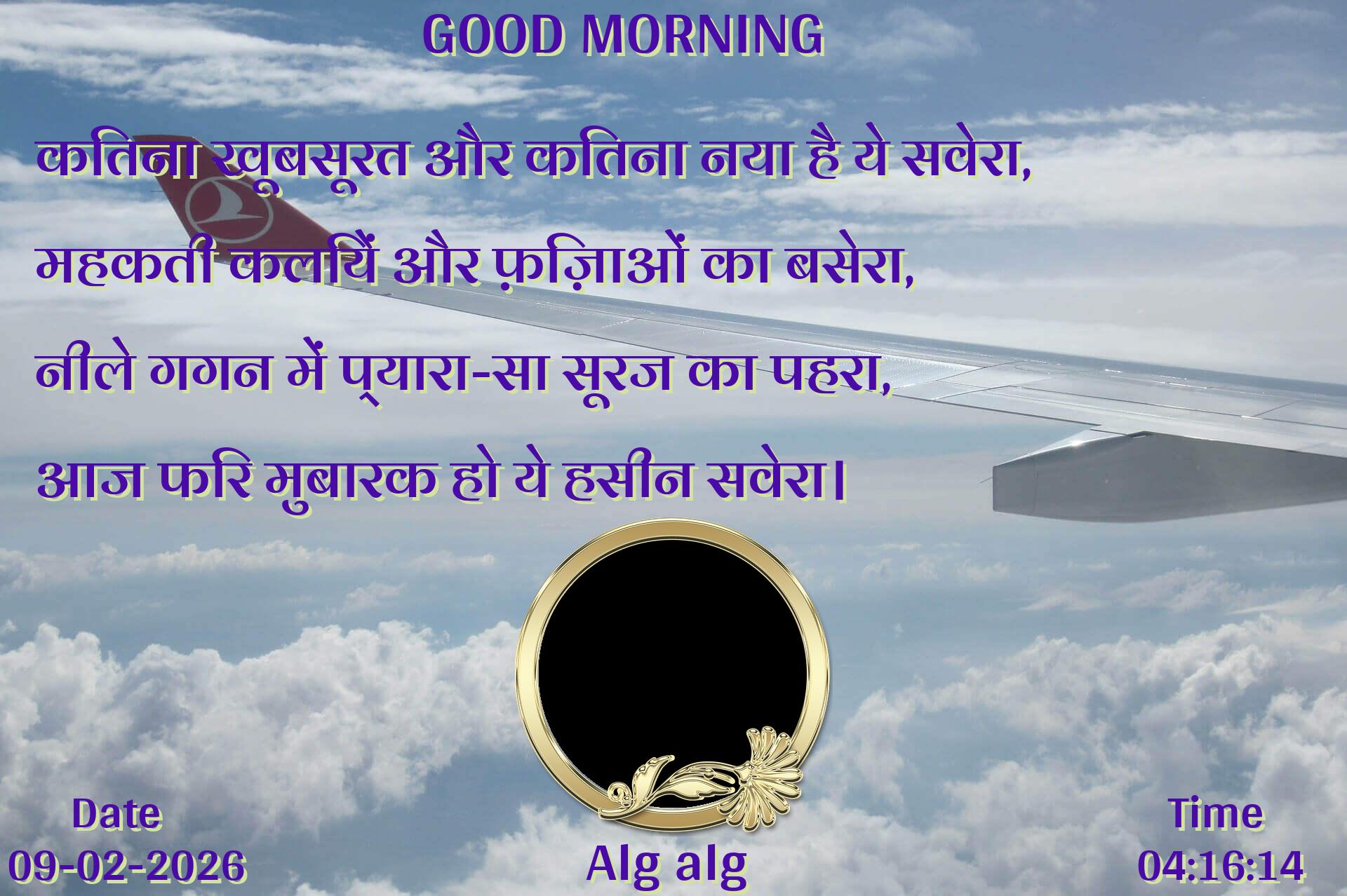 कितना खूबसूरत और कितना नया है ये सवेरा, महकती कलियें और फ़िज़ाओं का बसेरा, नीले गगन में प्यारा-सा सूरज का पहरा, आज फिर मुबारक हो ये हसीन सवेरा।