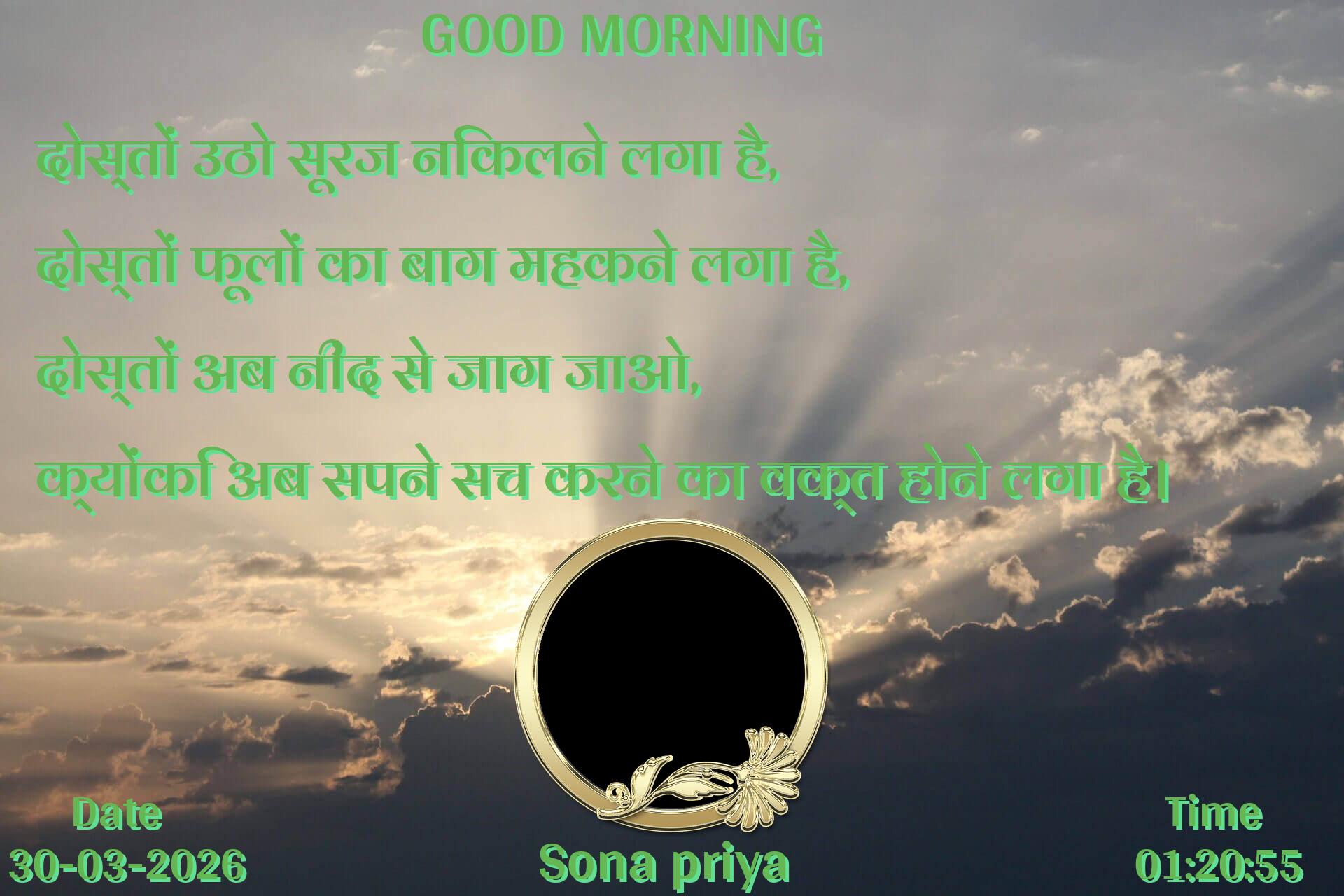 दोस्तों उठो सूरज निकलने लगा है, दोस्तों फूलों का बाग महकने लगा है, दोस्तों अब नींद से जाग जाओ, क्योंकि अब सपने सच करने का वक्त होने लगा है।