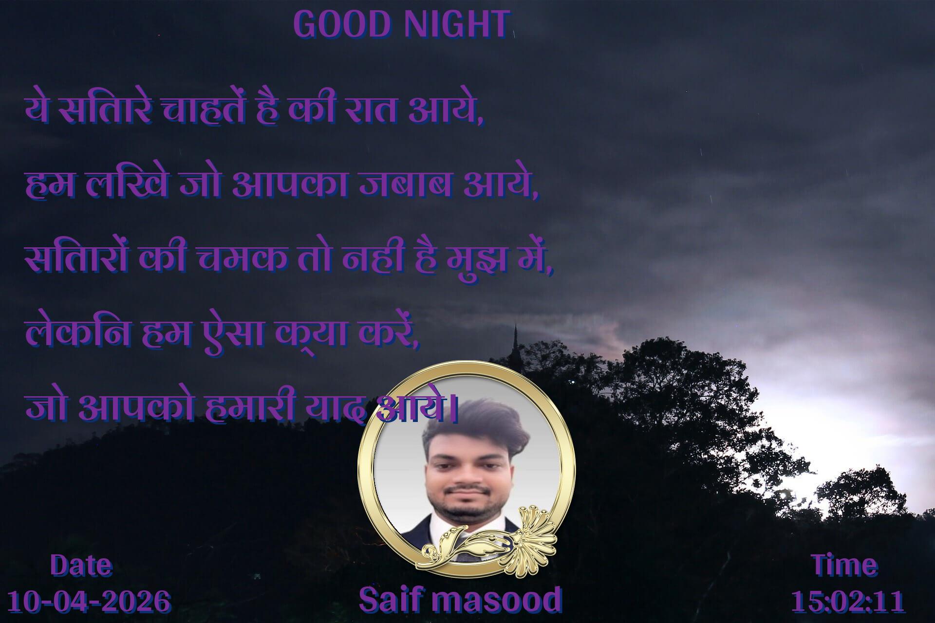 ये सितारे चाहतें है की रात आये, हम लिखे जो आपका जबाब आये, सितारों की चमक तो नही है मुझ में, लेकिन हम ऐसा क्या करें, जो आपको हमारी याद आये।