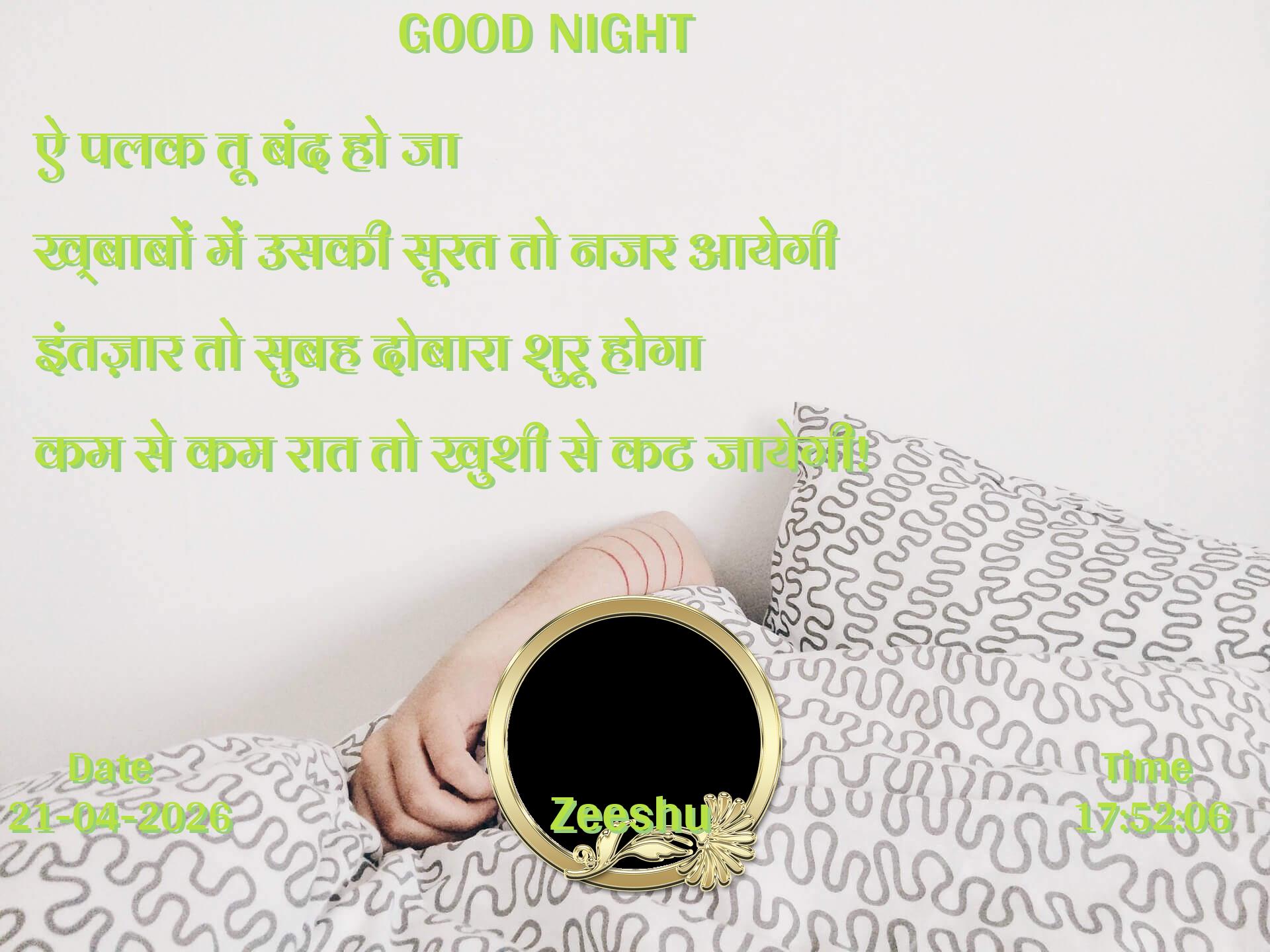 ऐ पलक तू बंद हो जा ख्बाबों में उसकी सूरत तो नजर आयेगी इंतज़ार तो सुबह दोबारा शुरू होगा कम से कम रात तो खुशी से कट जायेगी!
