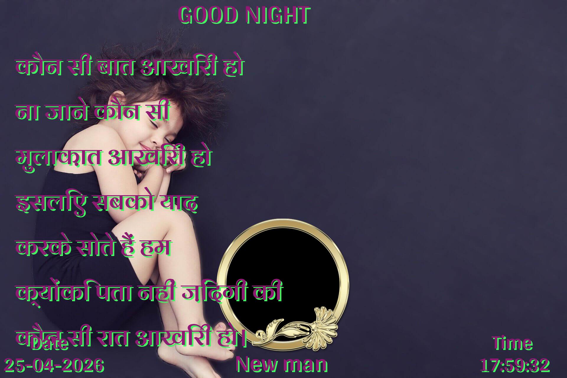 कौन सी बात आखिरी हो ना जाने कौन सी मुलाक़ात आखिरी हो इसलिए सबको याद करके सोते हैं हम क्योंकि पता नहीं ज़िंदगी की कौन सी रात आखिरी हो।