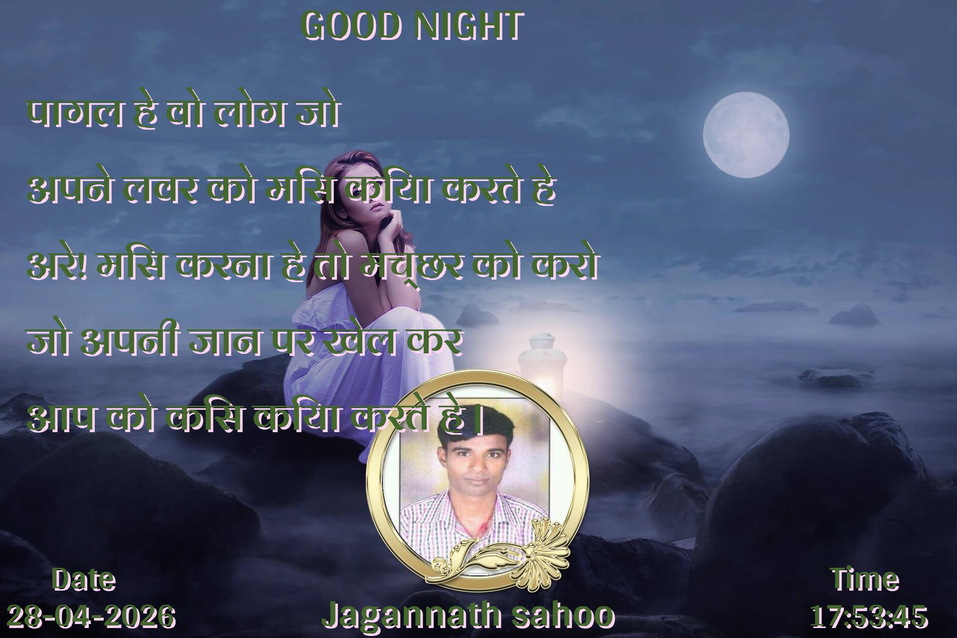 पागल हे वो लोग जो अपने लवर को मिस किया करते हे अरे! मिस करना हे तो मच्छर को करो जो अपनी जान पर खेल कर आप को किस किया करते हे |
