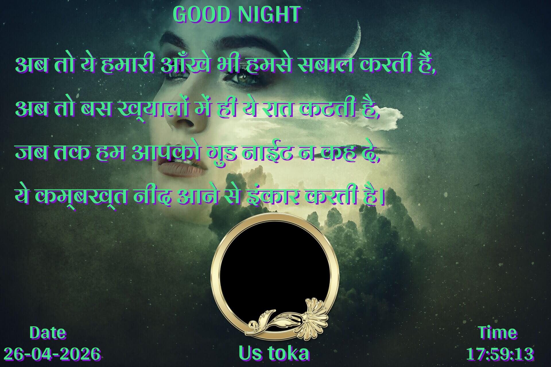 अब तो ये हमारी आँखे भी हमसे सबाल करती हैं, अब तो बस ख्यालों में ही ये रात कटती है, जब तक हम आपको गुड नाईट न कह दे, ये कम्बख्त नींद आने से इंकार करती है।