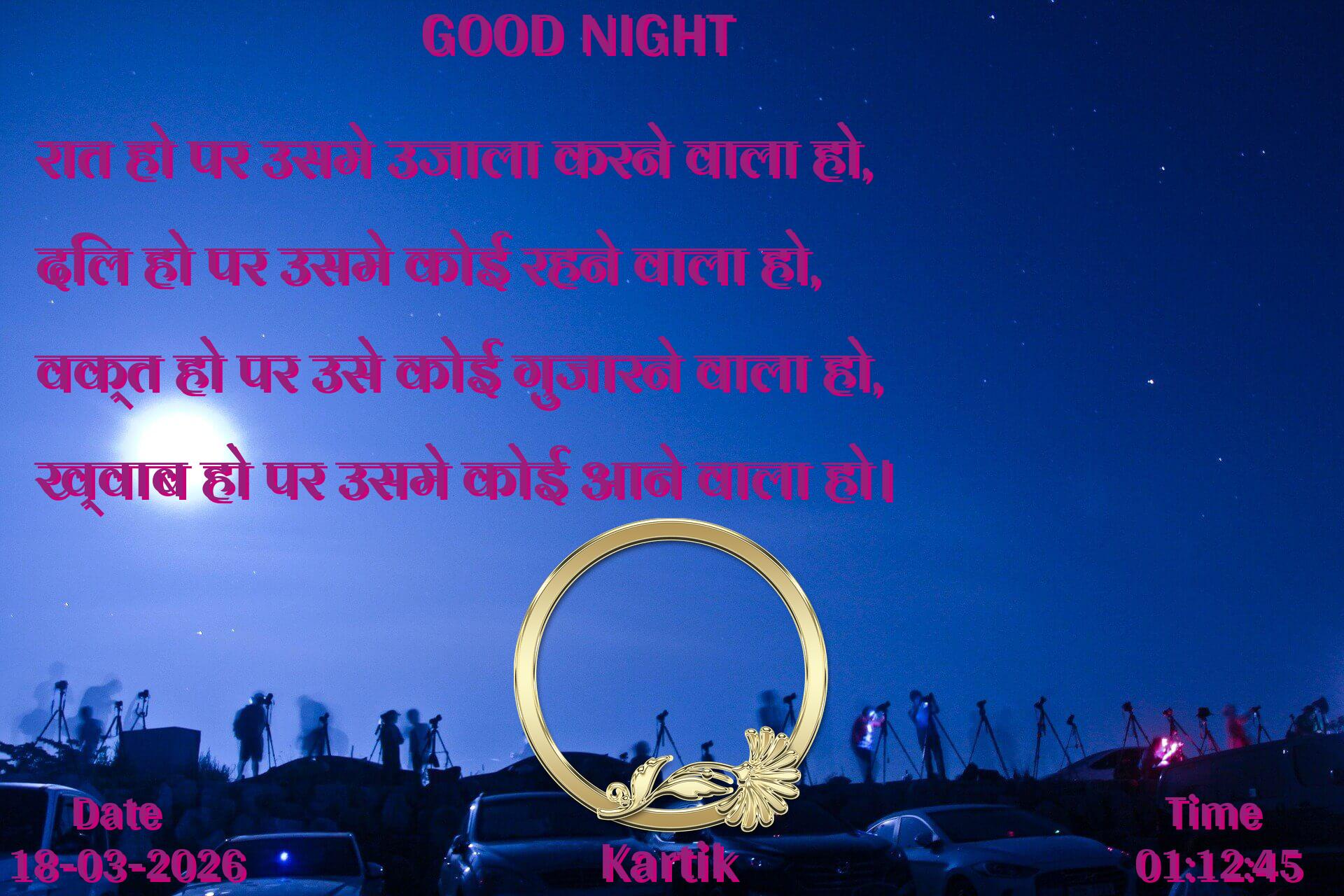 रात हो पर उसमे उजाला करने वाला हो, दिल हो पर उसमे कोई रहने वाला हो, वक्त हो पर उसे कोई गुजारने वाला हो, ख्वाब हो पर उसमे कोई आने वाला हो।