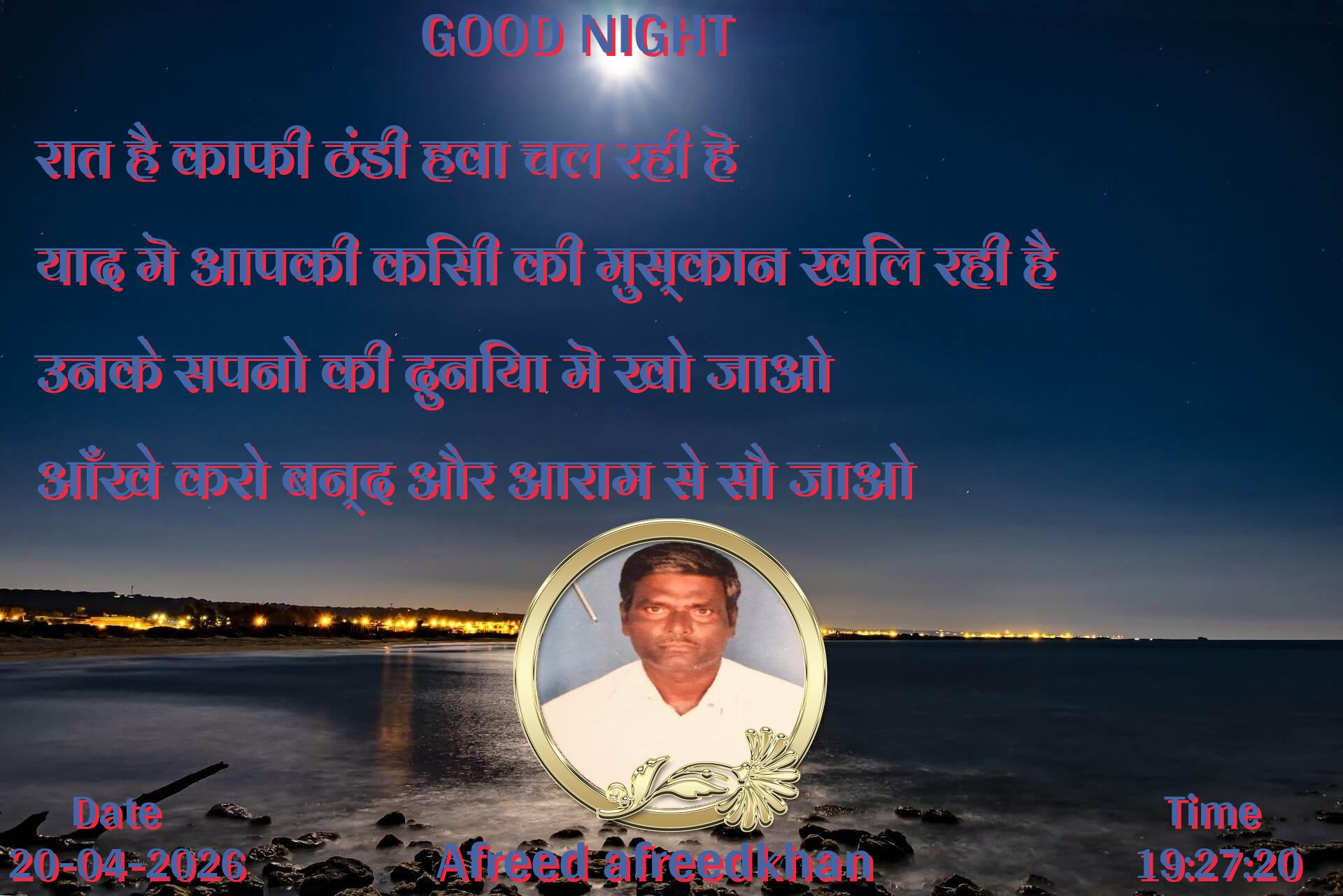 रात है काफी ठंडी हवा चल रही हॆ याद मॆ आपकी किसी की मुस्कान खिल रही है उनके सपनो की दुनिया मॆ खो जाओ आँखे करो बन्द और आराम से सौ जाओ