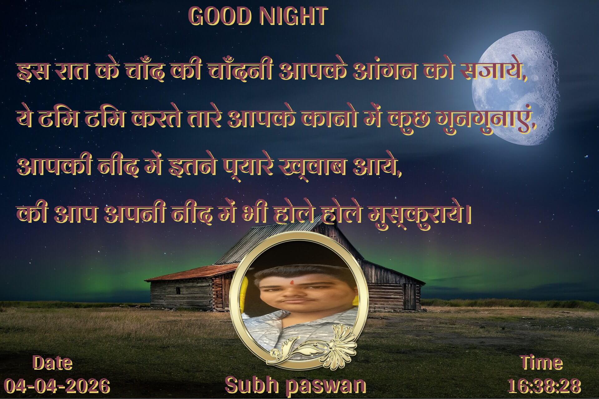इस रात के चाँद की चाँदनी आपके आंगन को सजाये, ये टिम टिम करते तारे आपके कानो में कुछ गुनगुनाएं, आपकी नींद में इतने प्यारे ख्वाब आये, की आप अपनी नींद में भी होले होले मुस्कुराये।