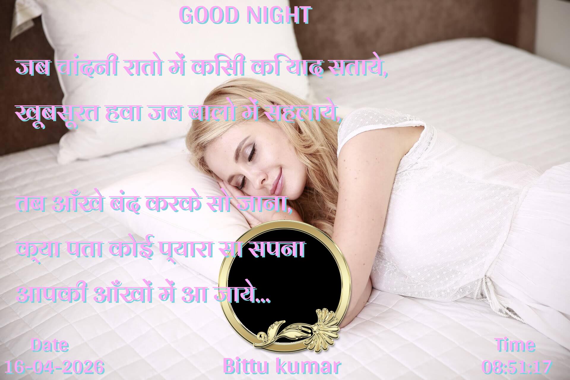 जब चांदनी रातो में किसी कि याद सताये, खूबसूरत हवा जब बालो में सहलाये, तब आँखे बंद करके सो जाना, क्या पता कोई प्यारा सा सपना आपकी आँखों में आ जाये…