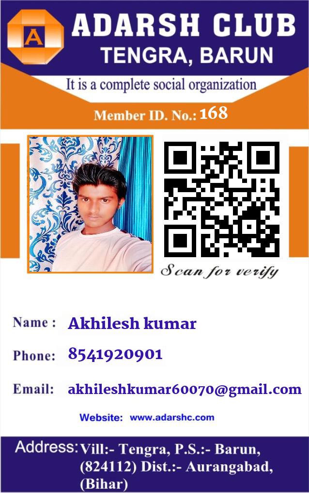 😀 Akhilesh kumar 👉 ADARSH CLUB का सदस्य है!
