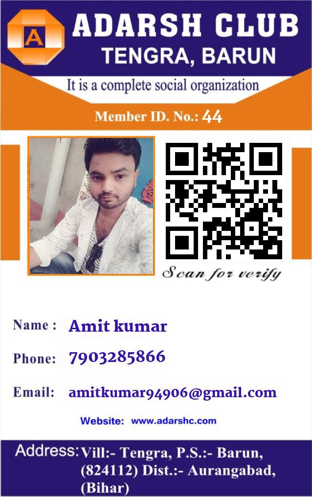😀 Amit kumar 👉 ADARSH CLUB का सदस्य है!
