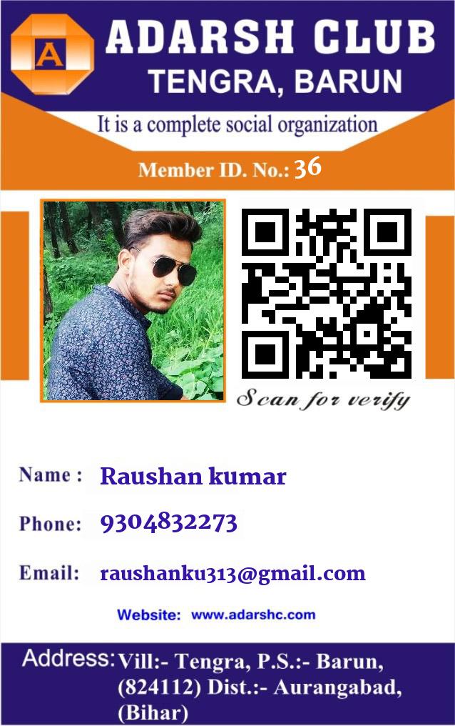 😀 Raushan kumar 👉 ADARSH CLUB का सदस्य है!
